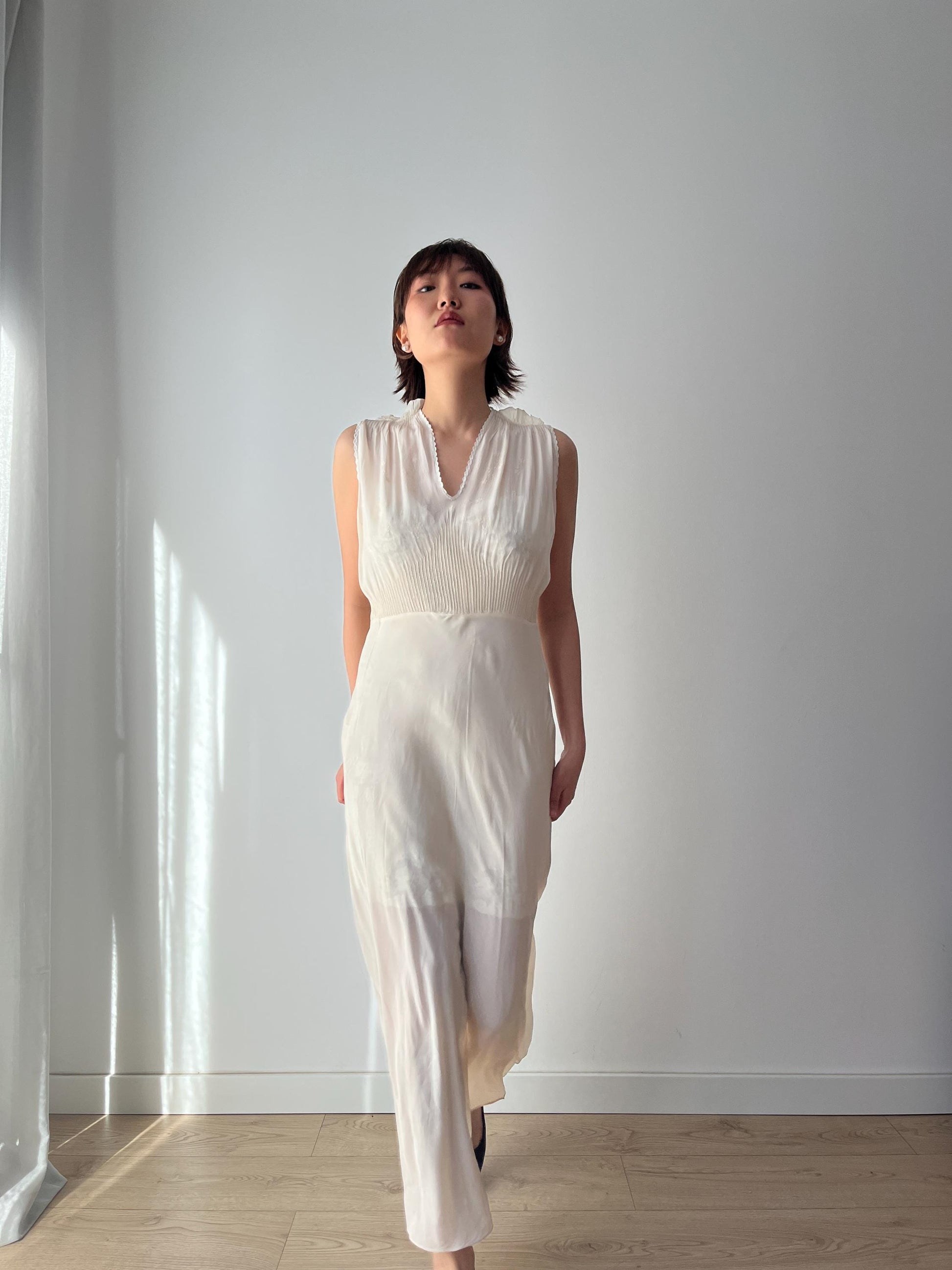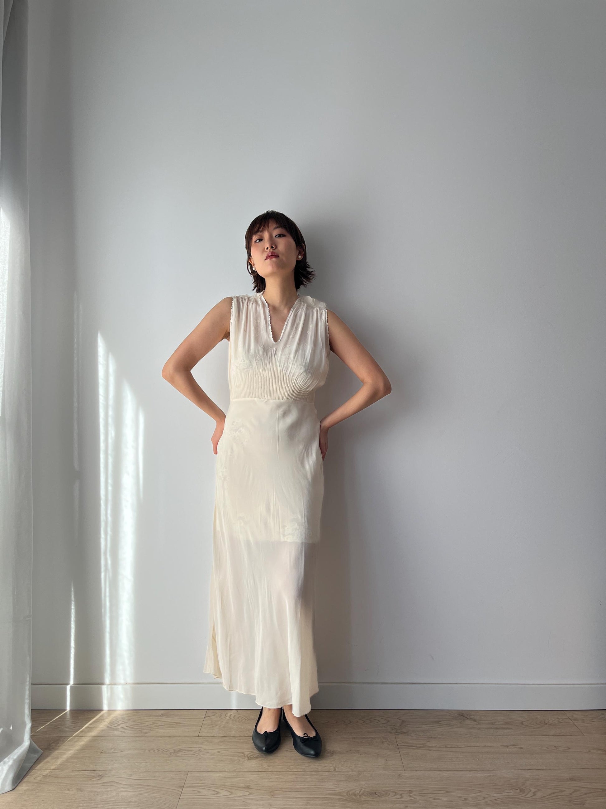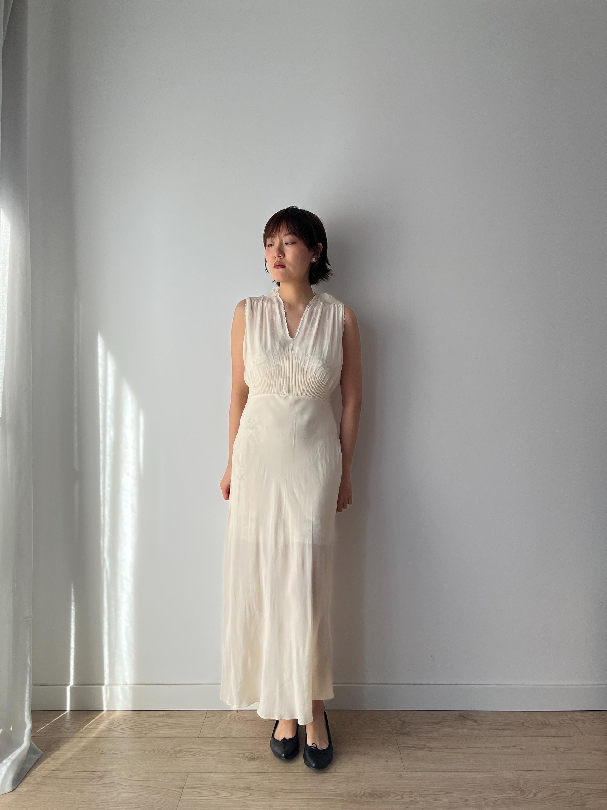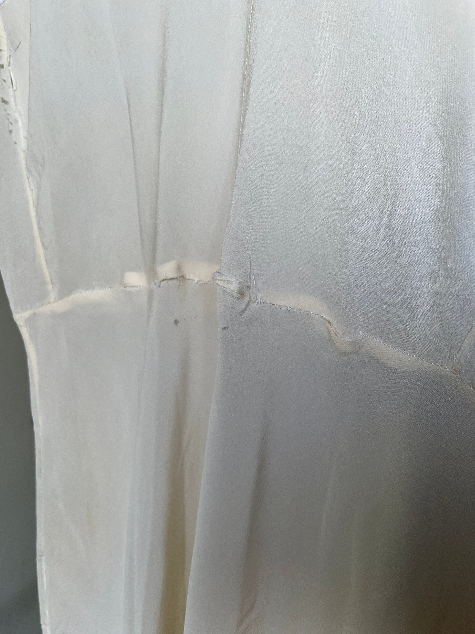 Chemise de nuit antique en pure soie brodée, coupe biaisée, années 1930