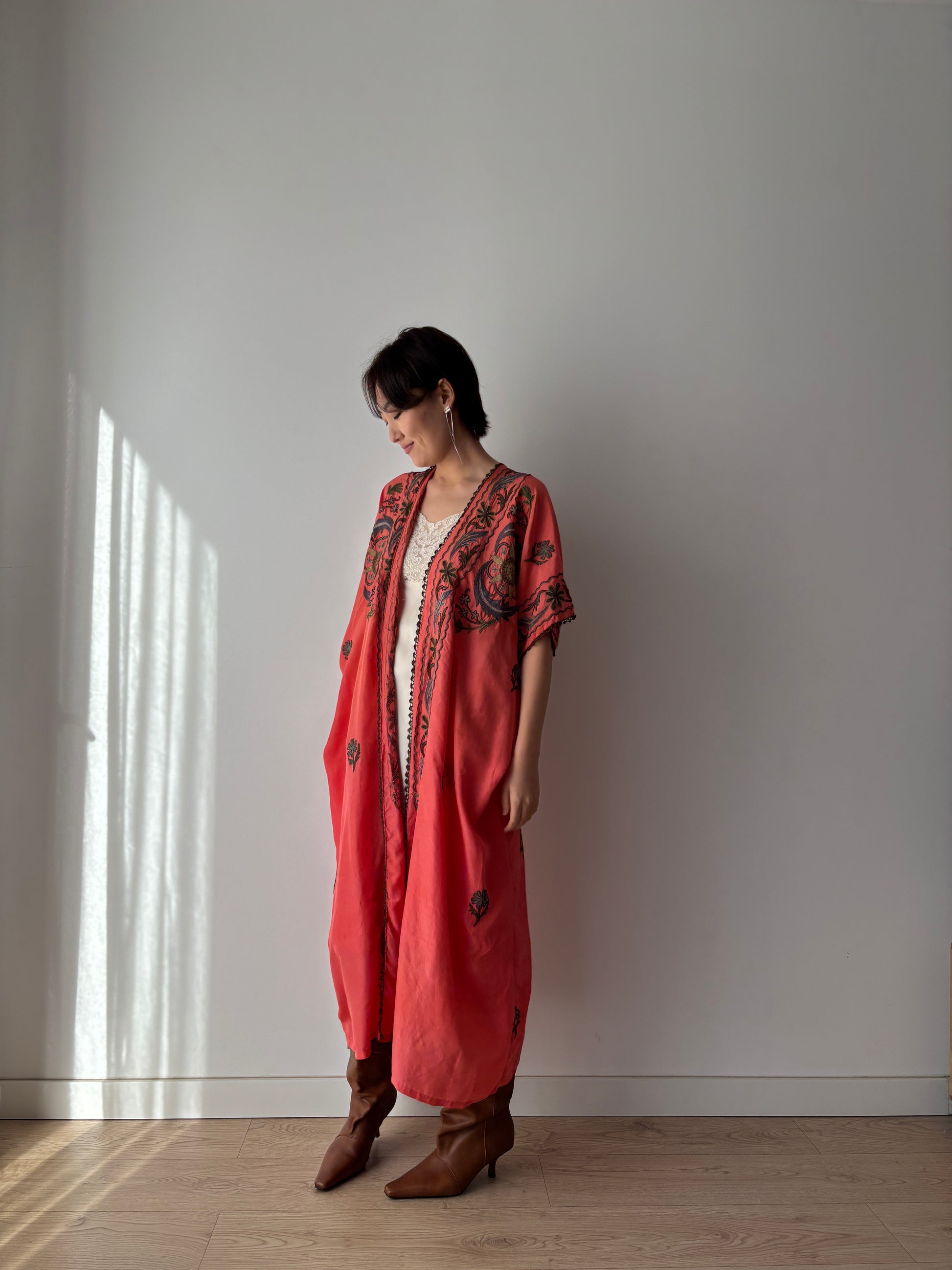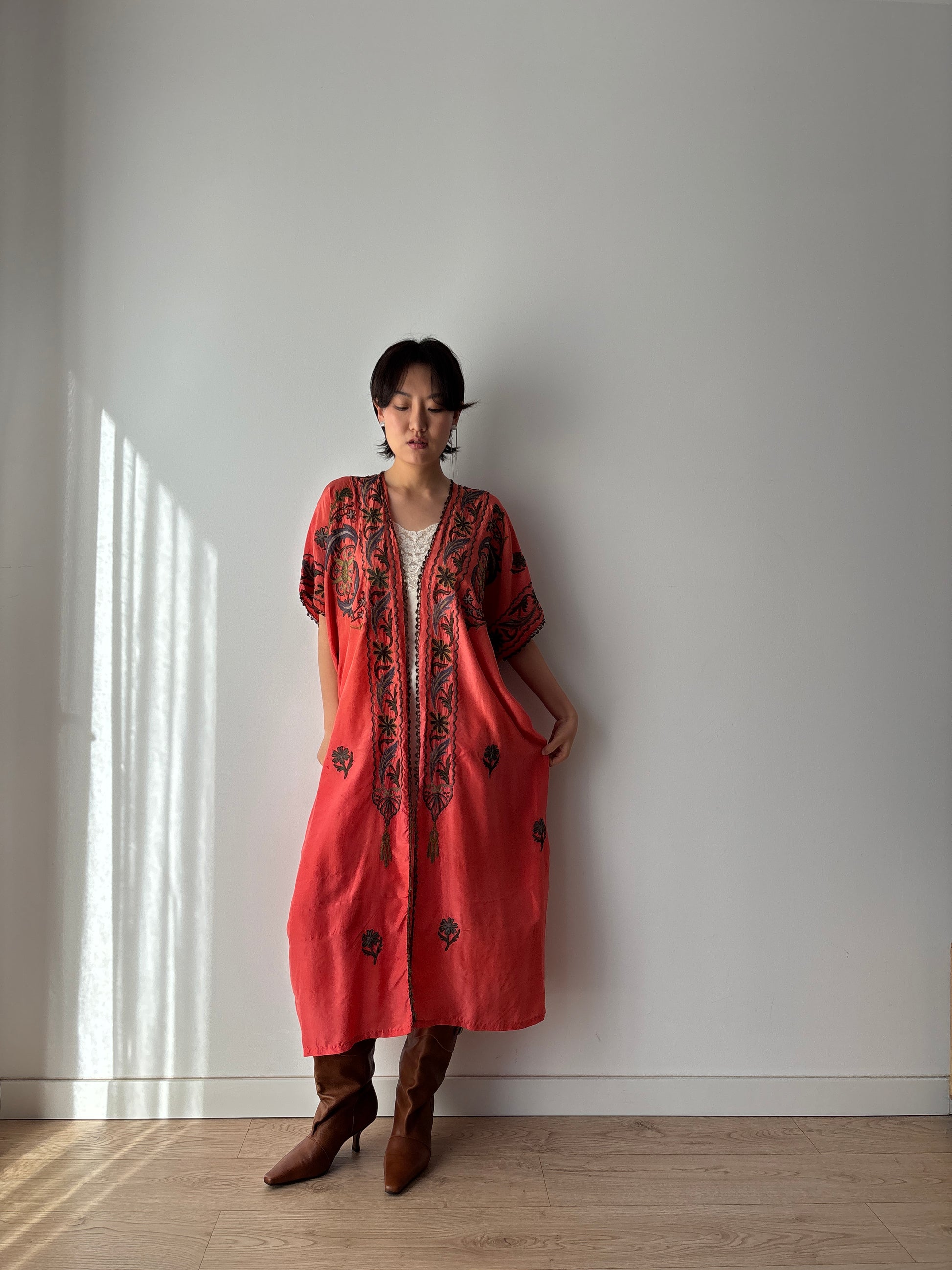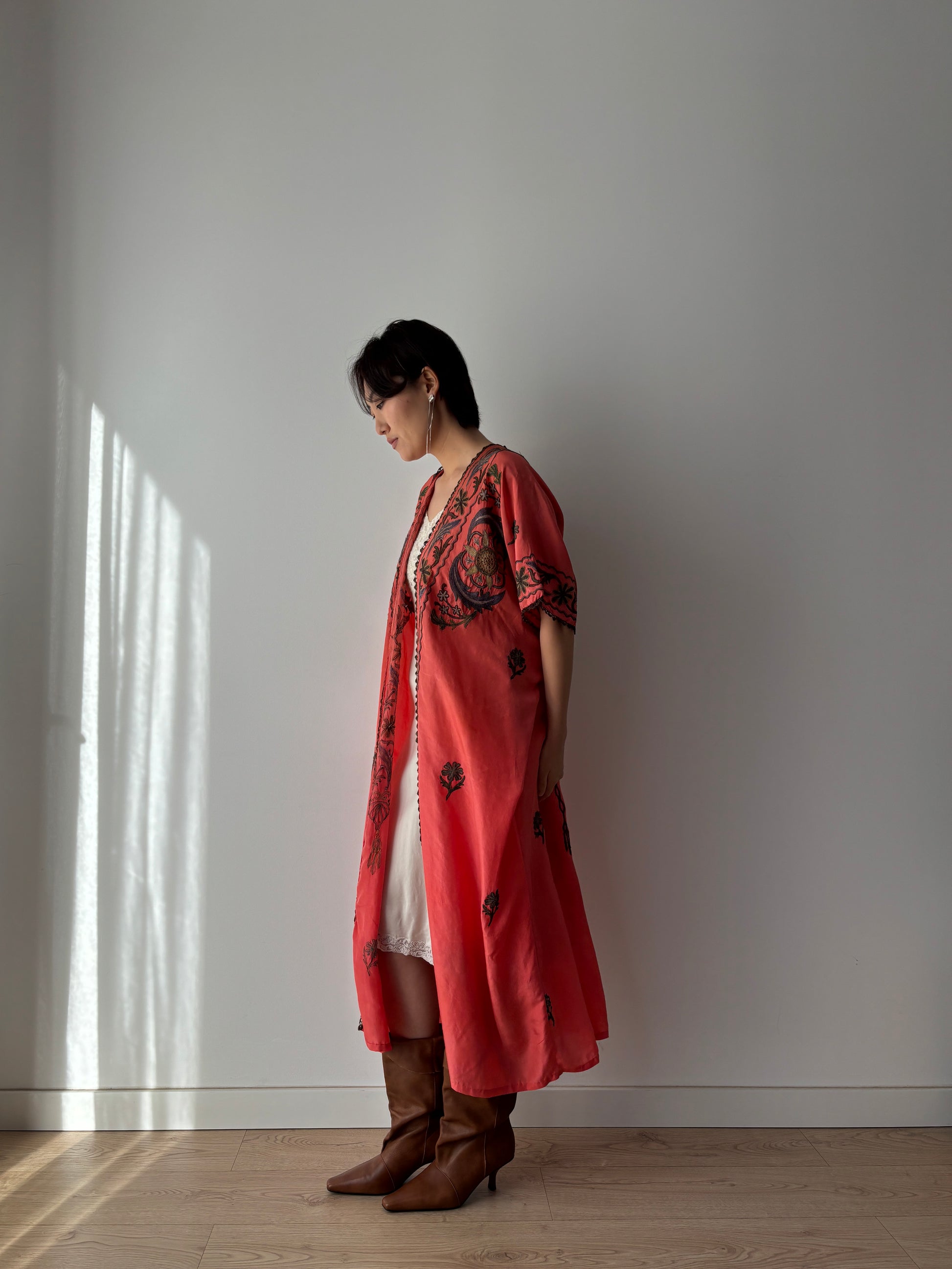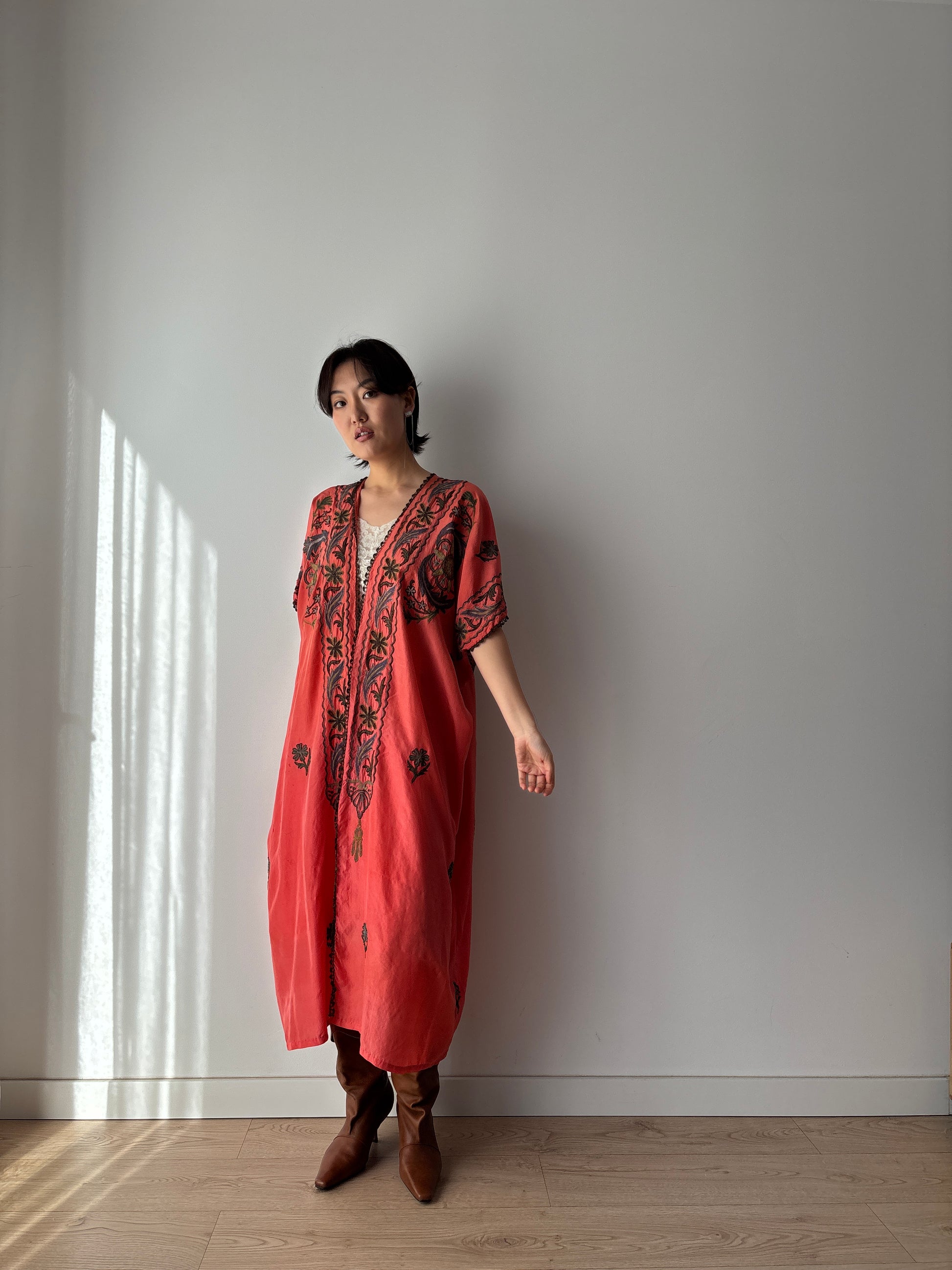 Antique 1900s Red Kimono robe - Rare Authentic Ottoman Robe with Metallic Floral Embroidery