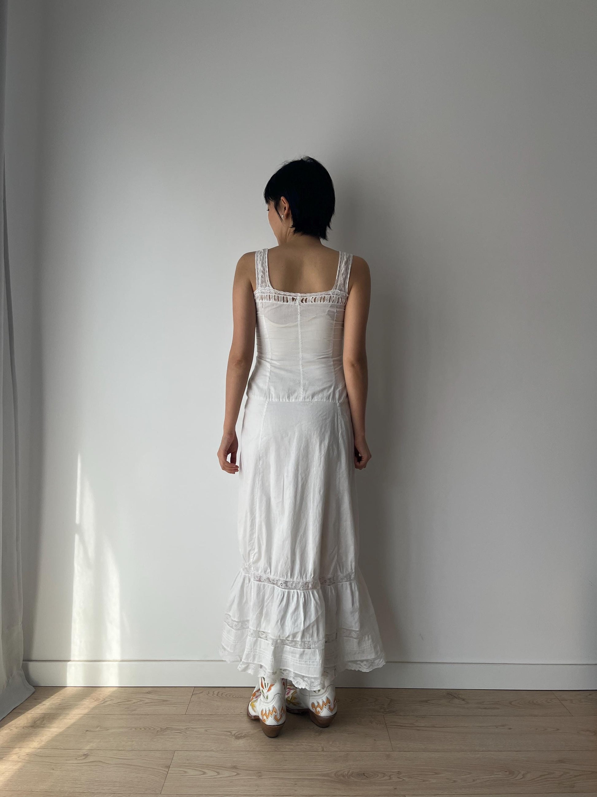 1910s 1900s Antique White Cotton Edwardian Victorian Lace Slip dress