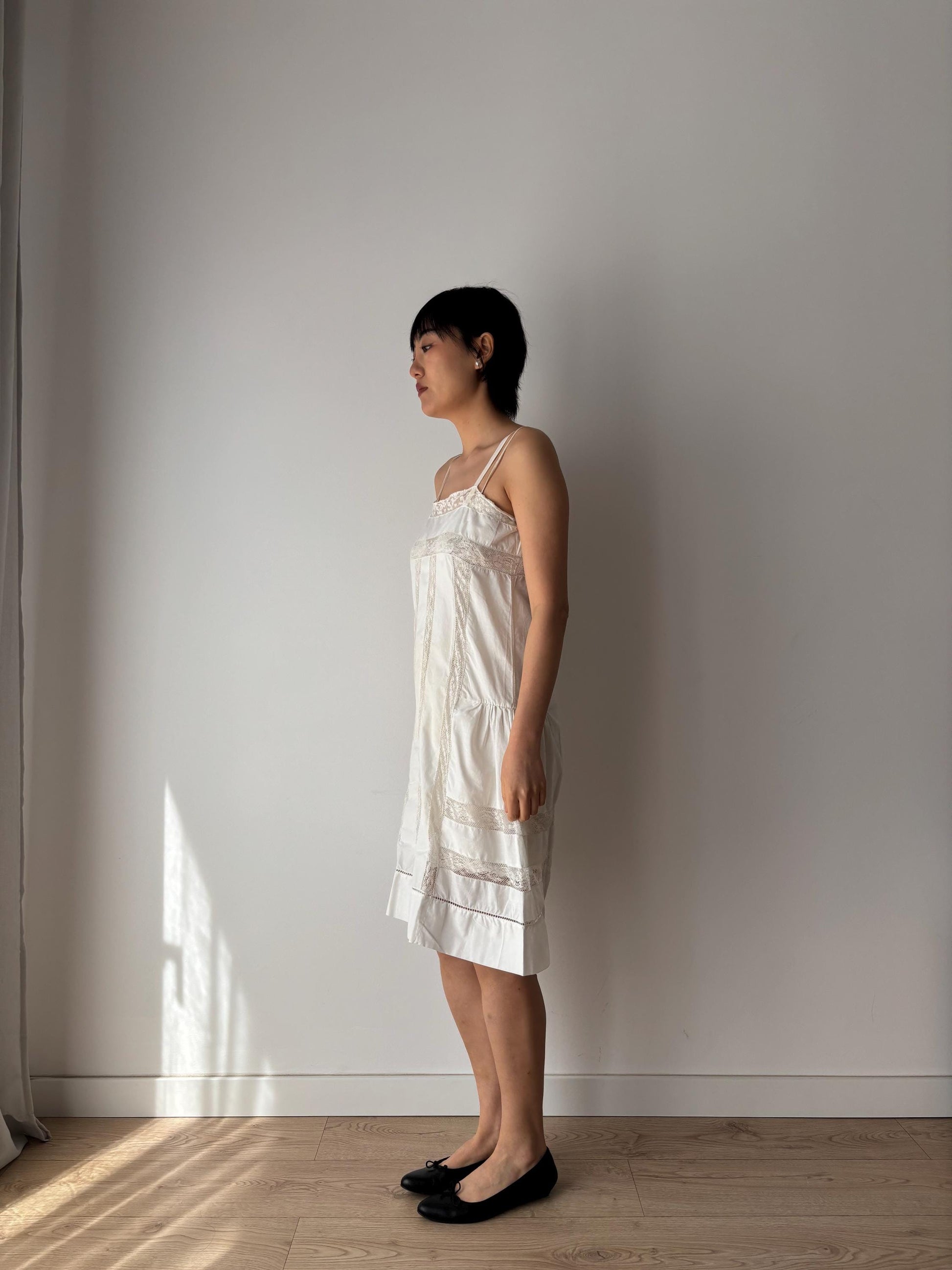 1910s 1900s Antique White Cotton Edwardian Victorian Lace Slip dress, Vintage lace mini dress