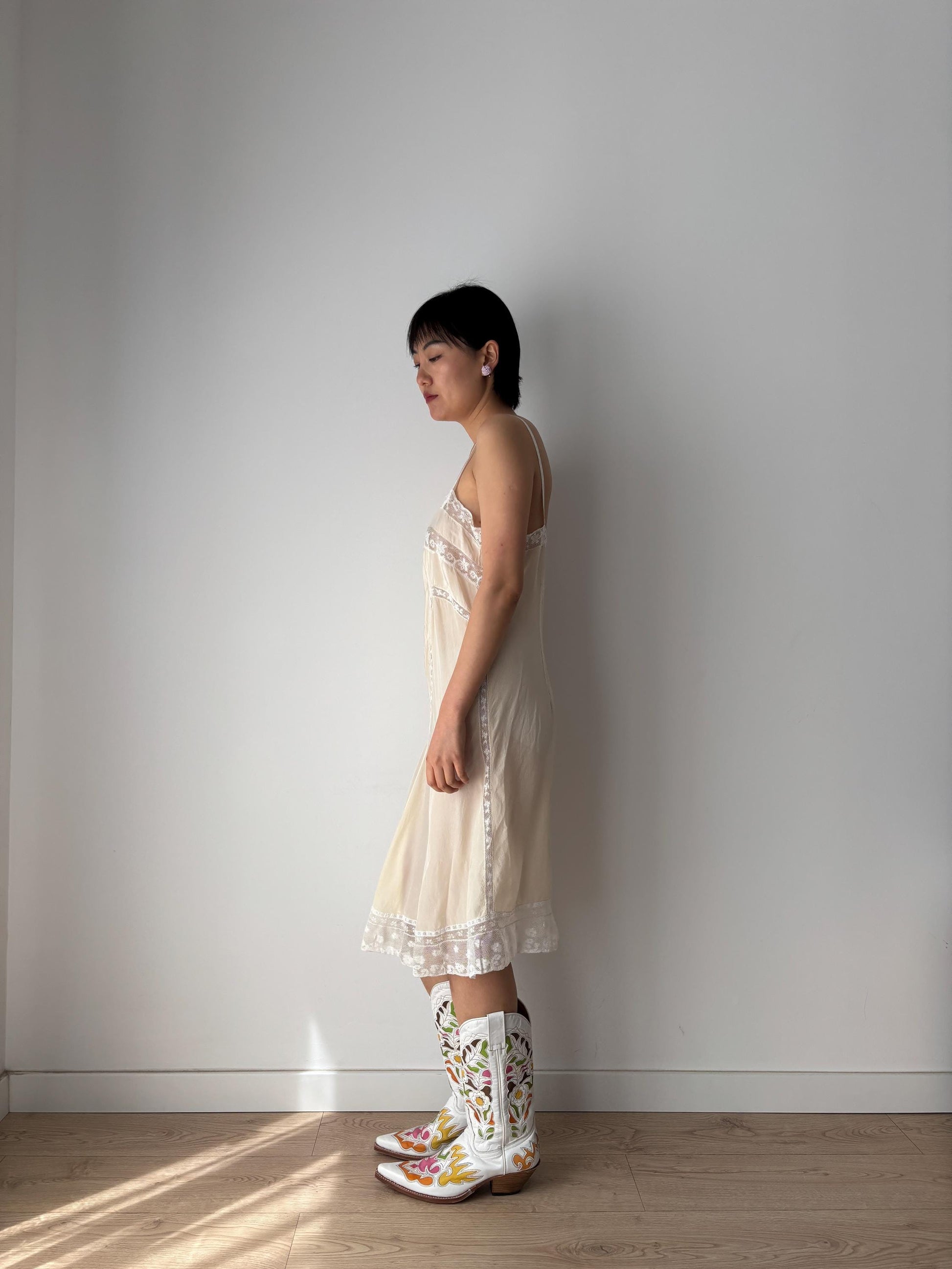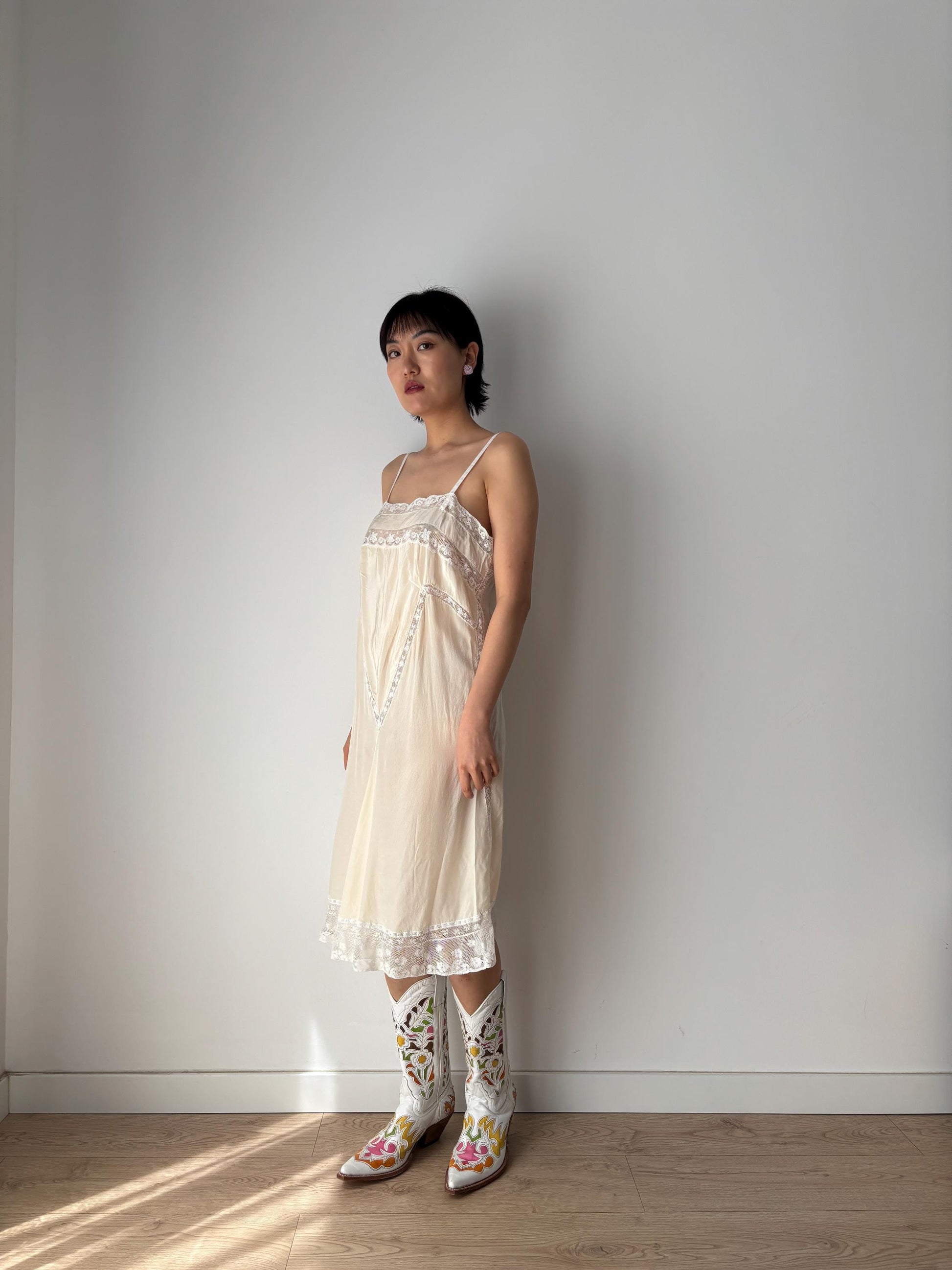 1920s 1930s Antique White Silk Edwardian Victorian Lace Slip dress