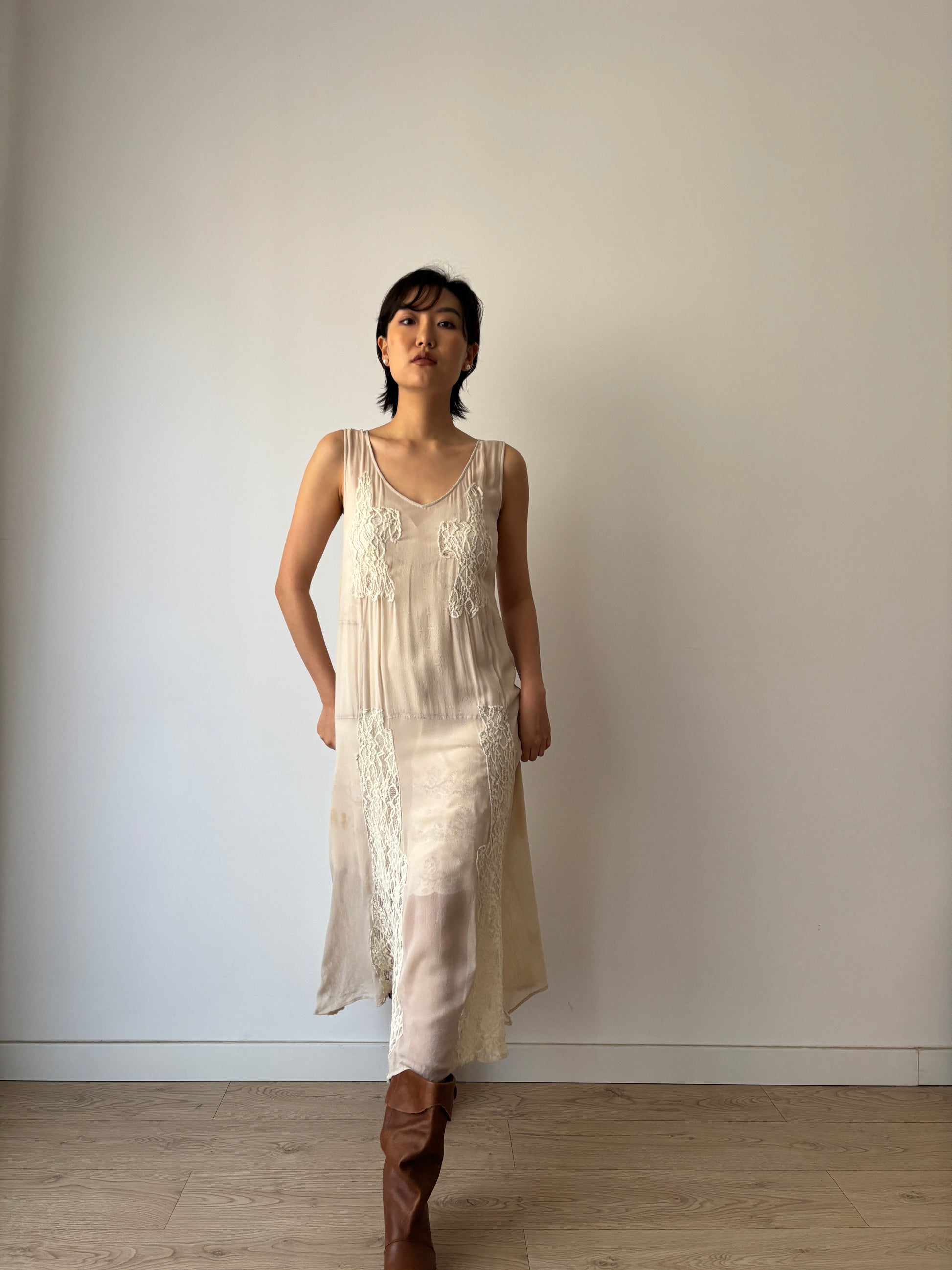 1920s Style White Silk Art Deco Flapper Lace Slip dress