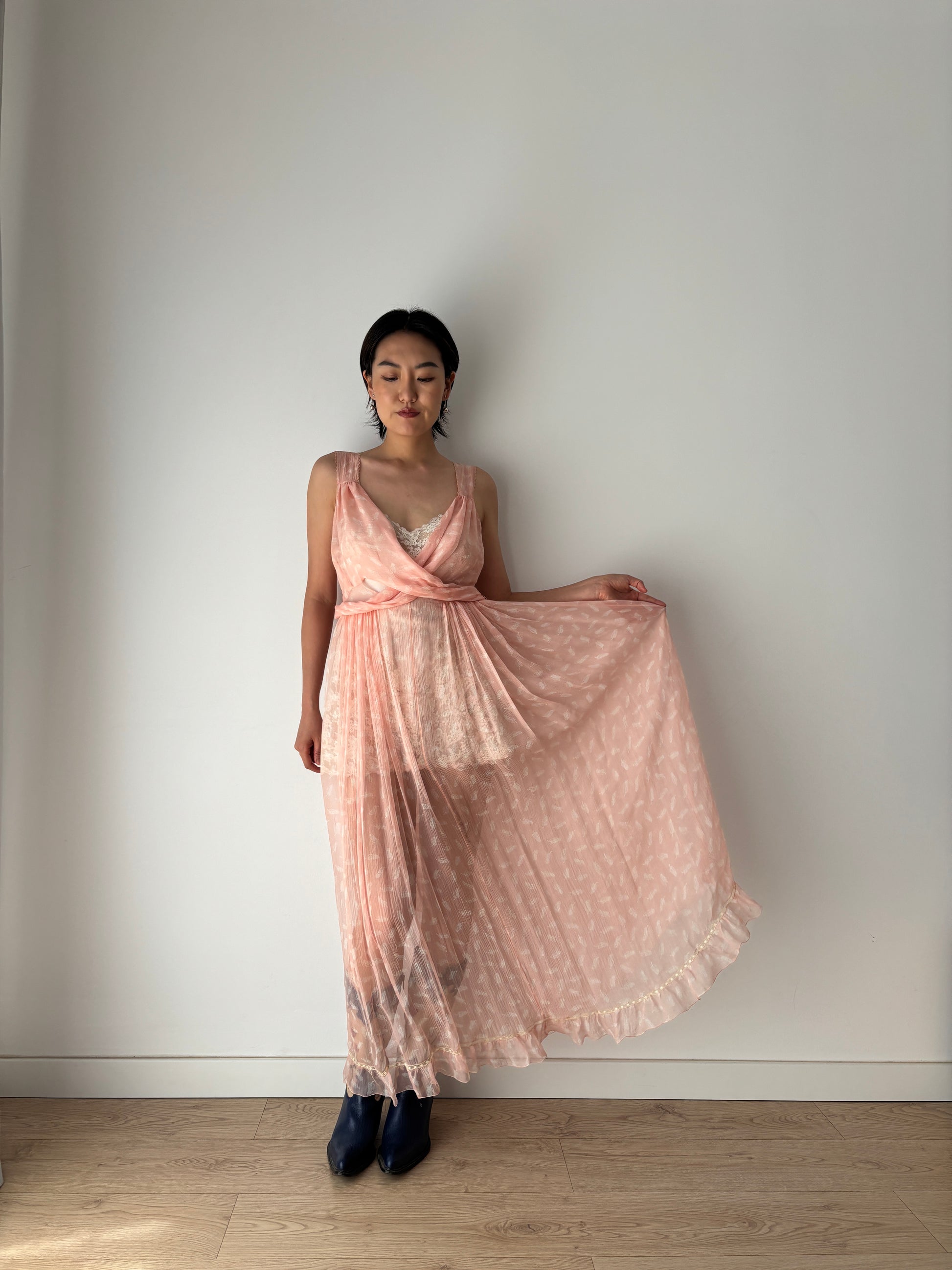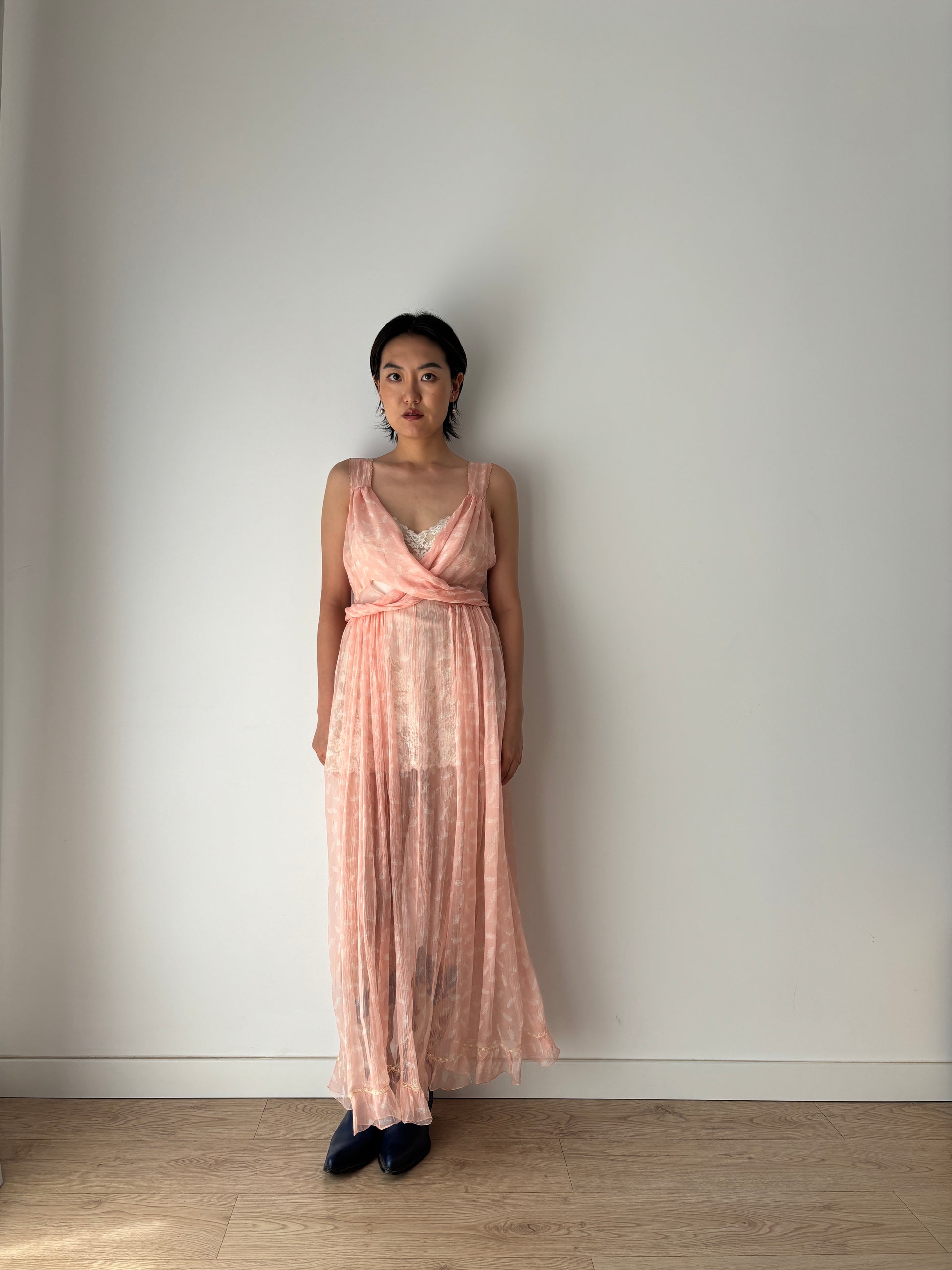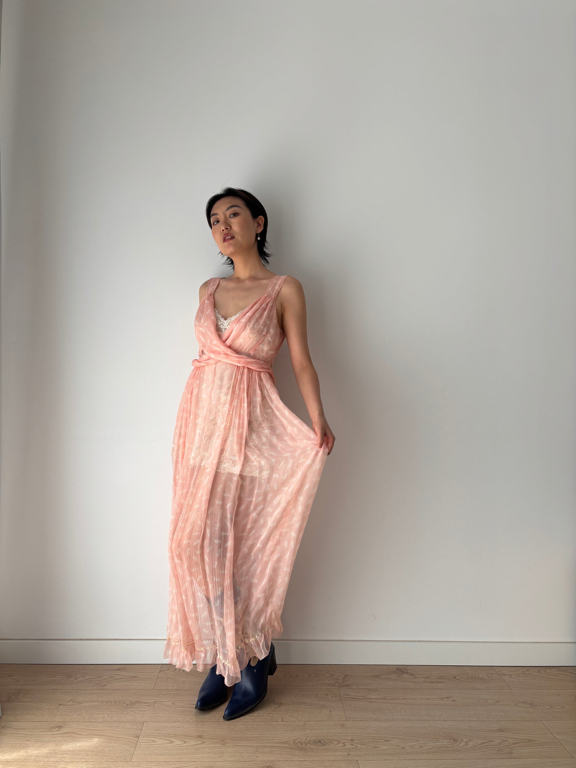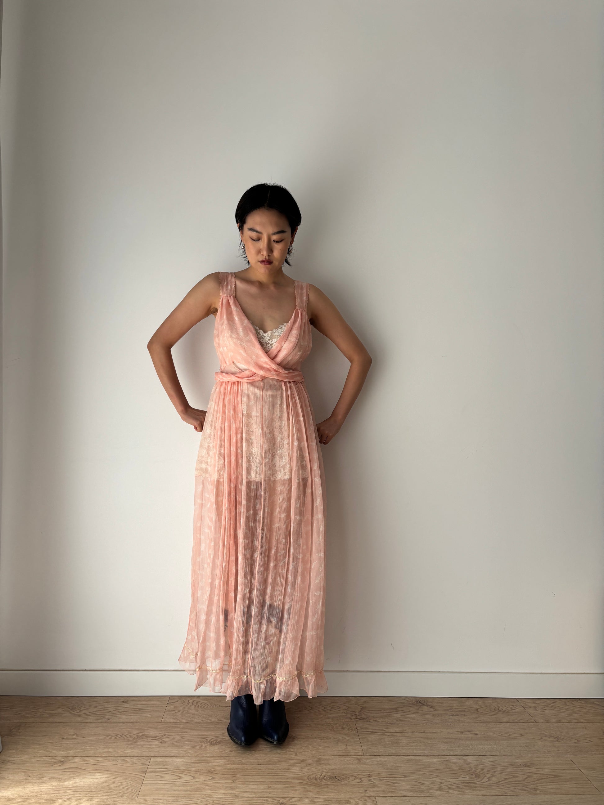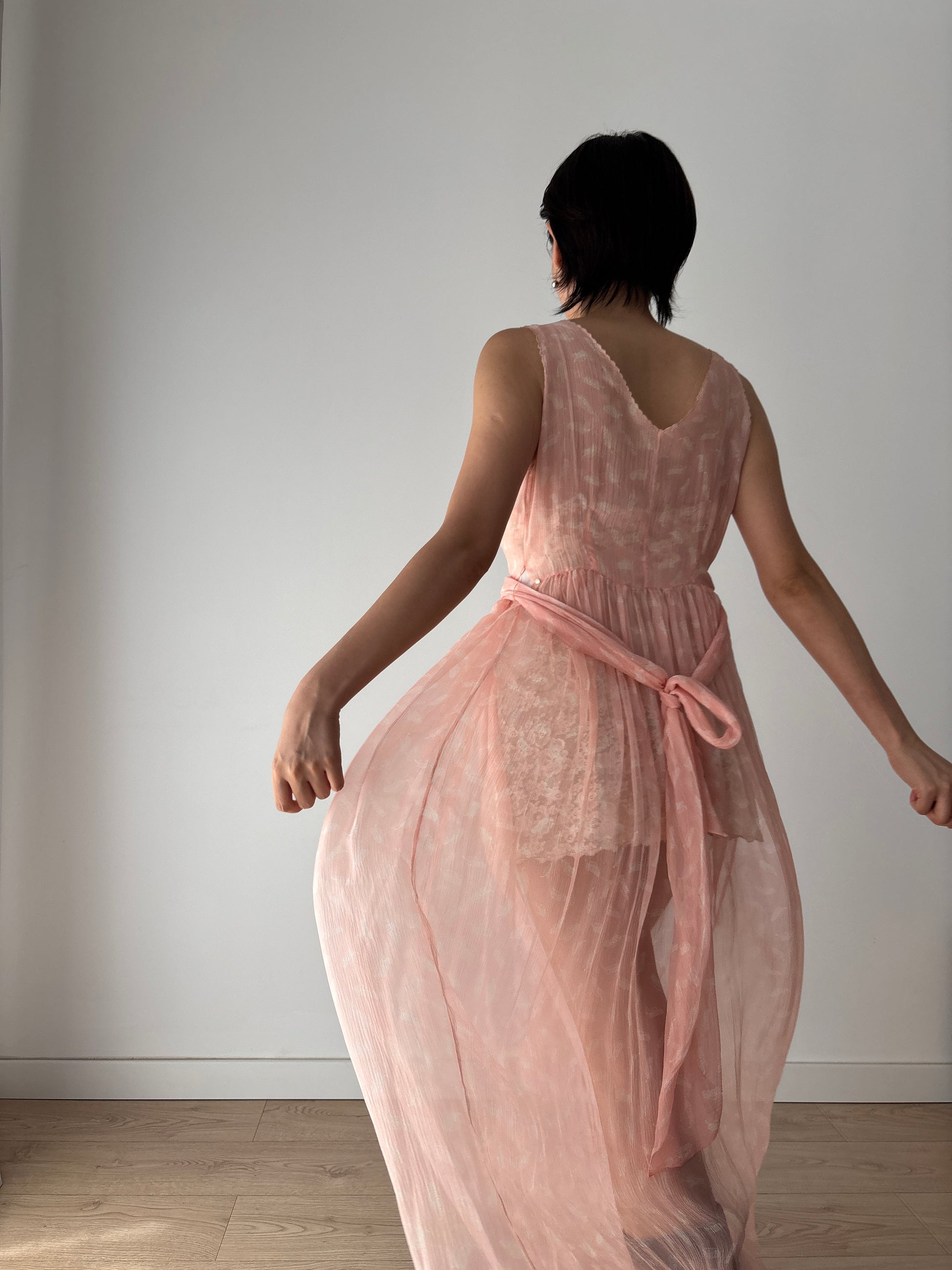 1930s Antique Bias Cut Negligee Pure Silk Chiffon Lace Romantic Liquid dress