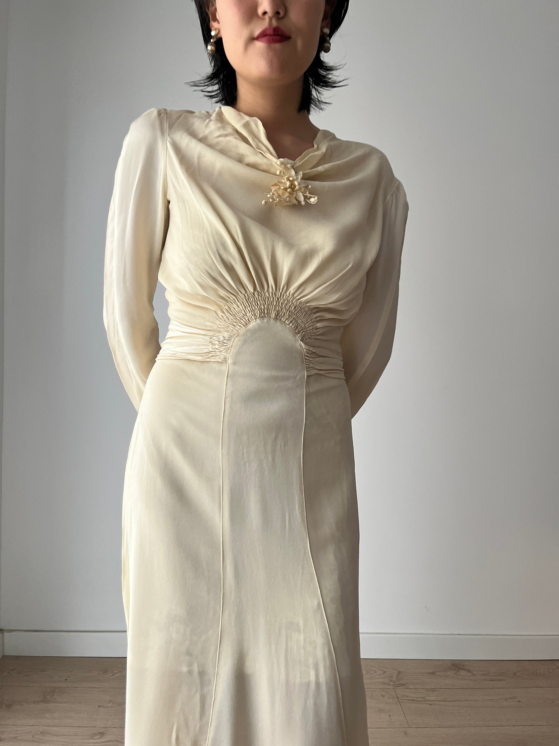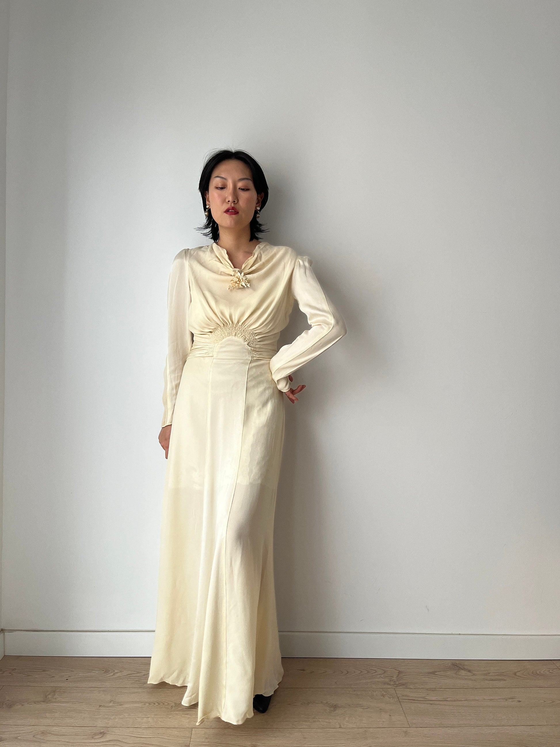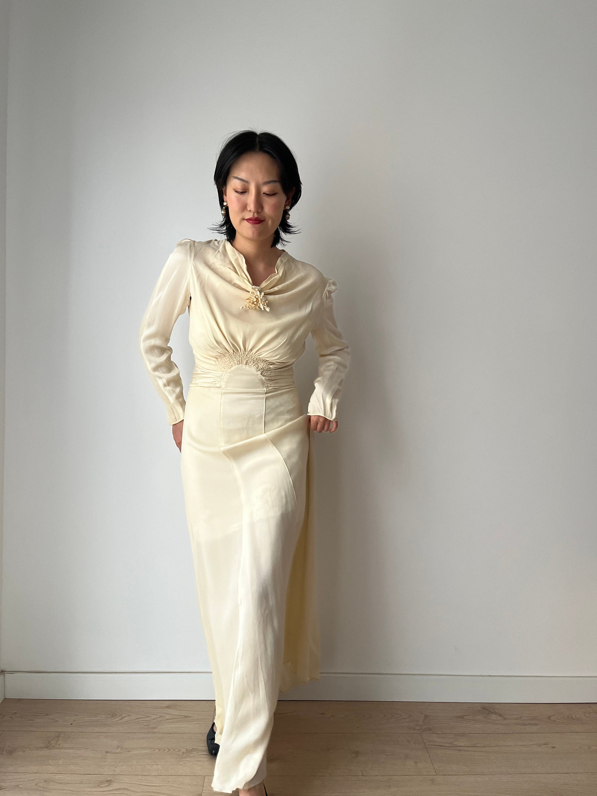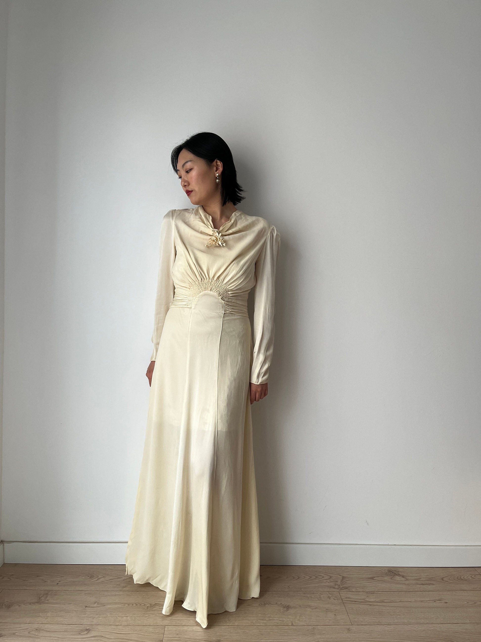 Rare Antique retro 1930s lace silk rayon long bias cut bridal wedding dress