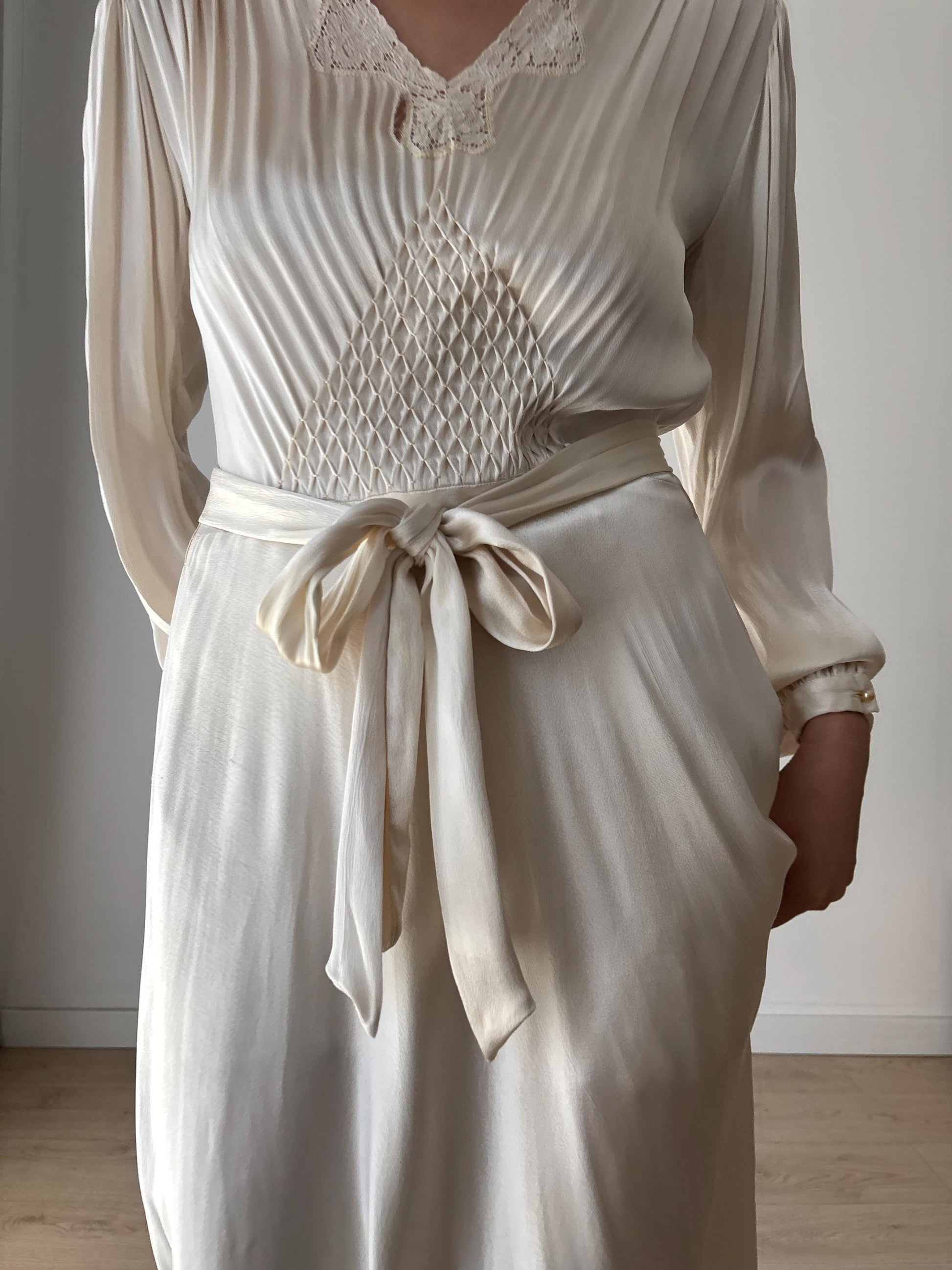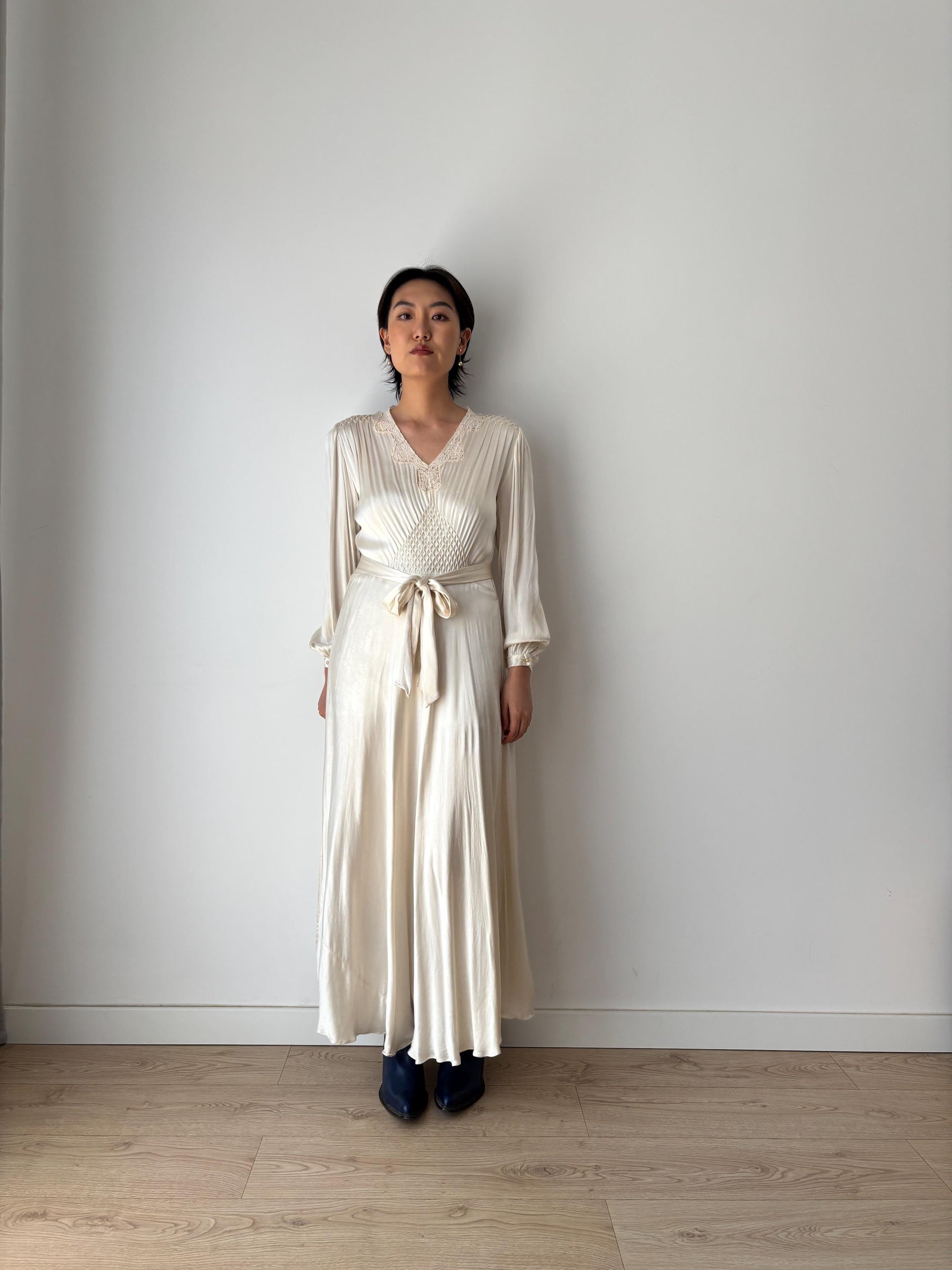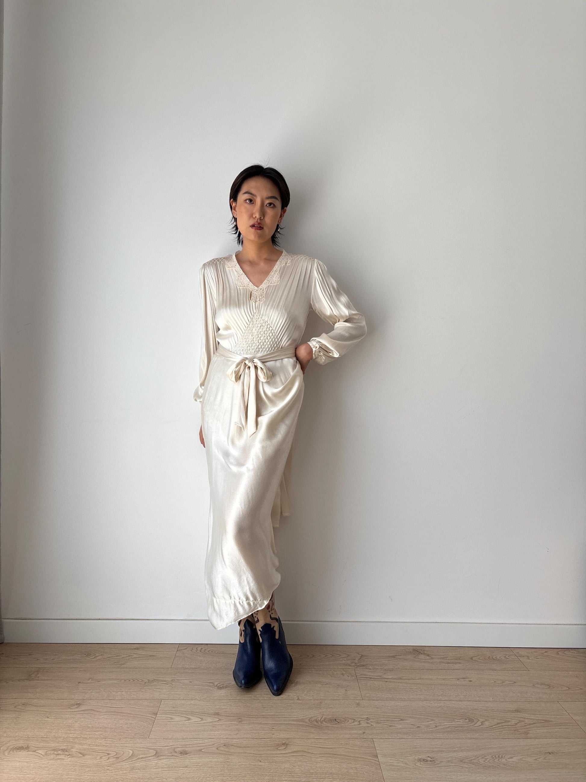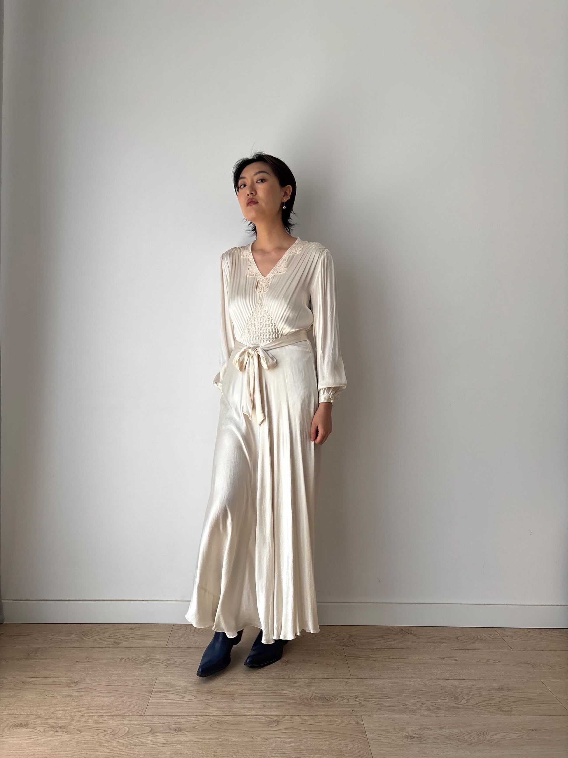 1930s Antique Lace Bridal 100% Silk Liquid Satin Long Maxi dress