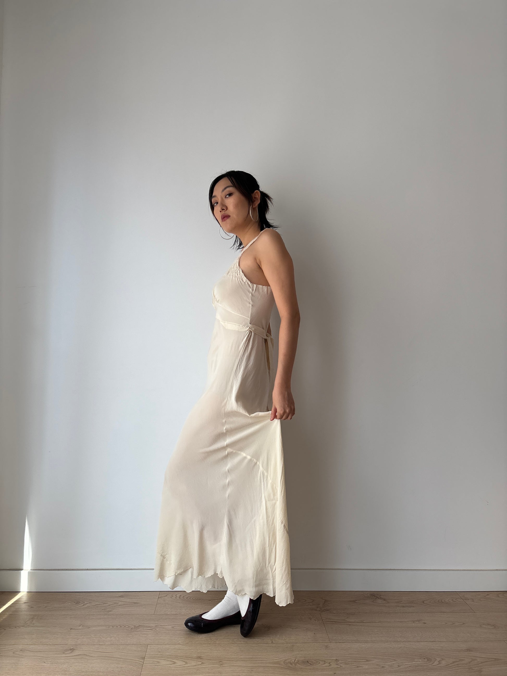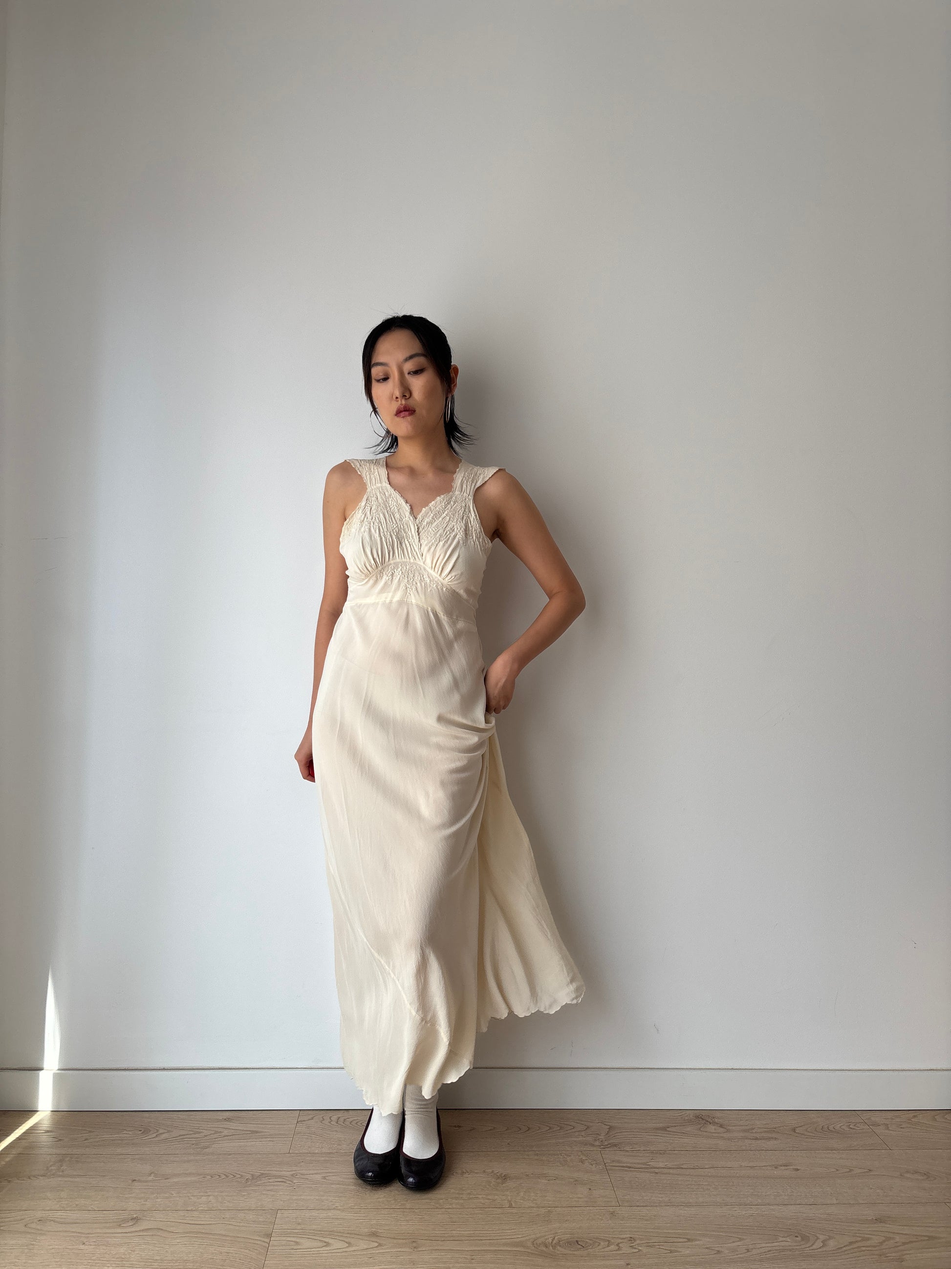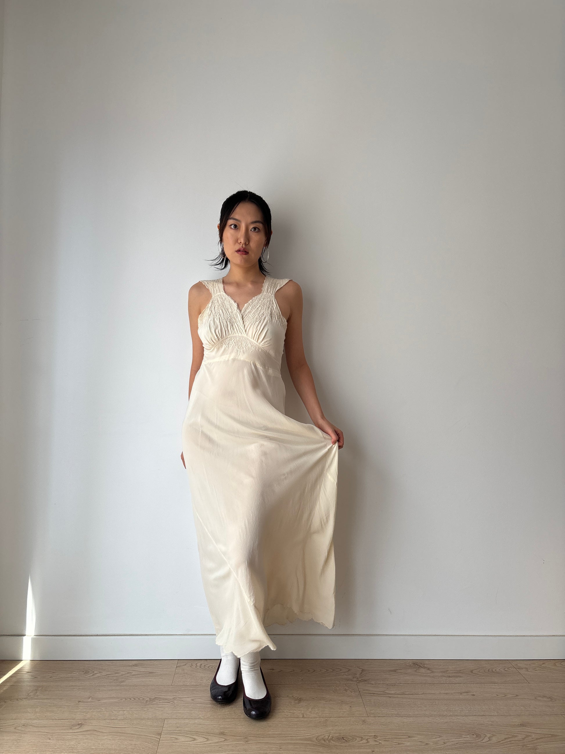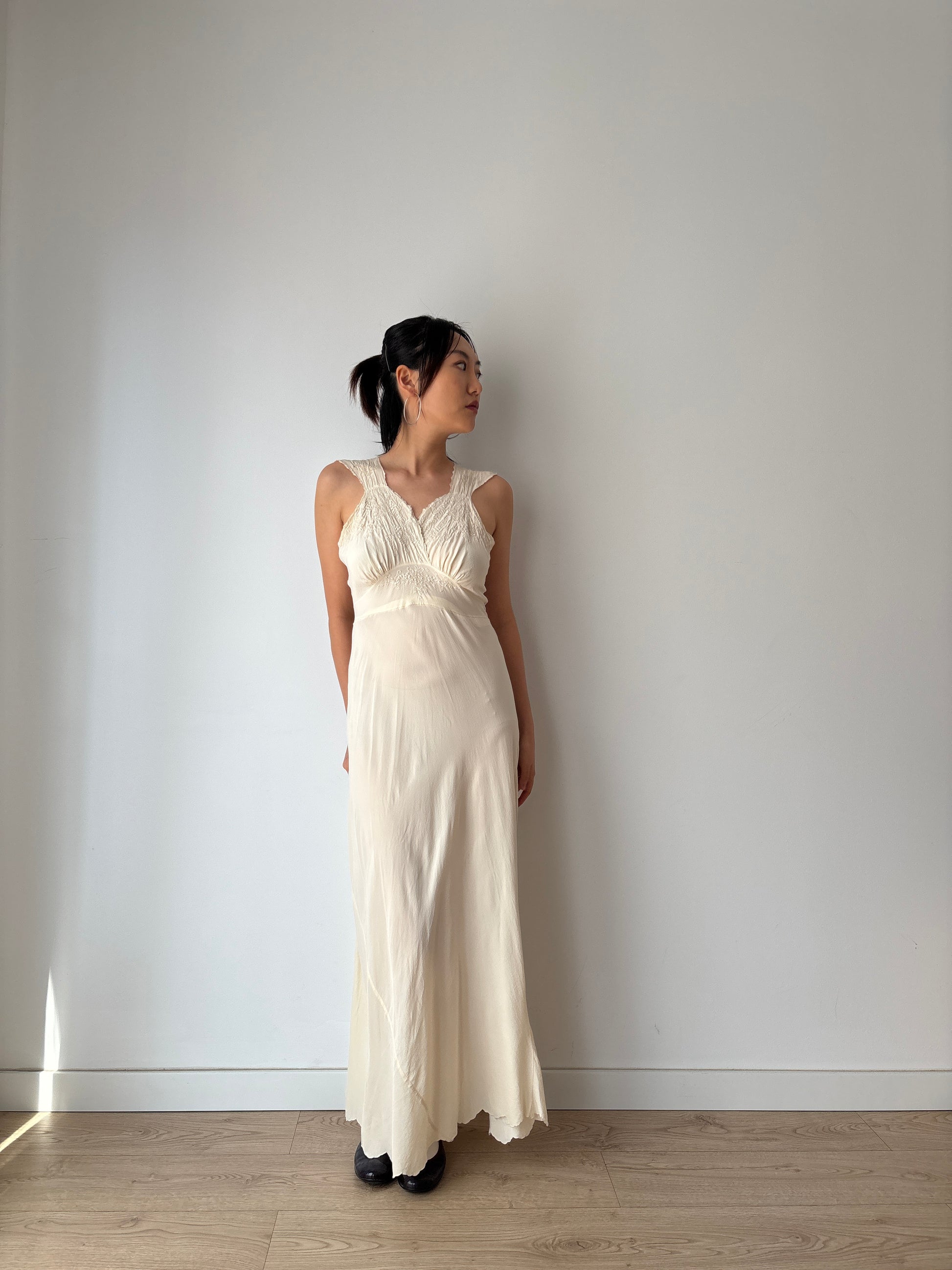 Vintage antique 1930s lace bias cut bridal maxi dress