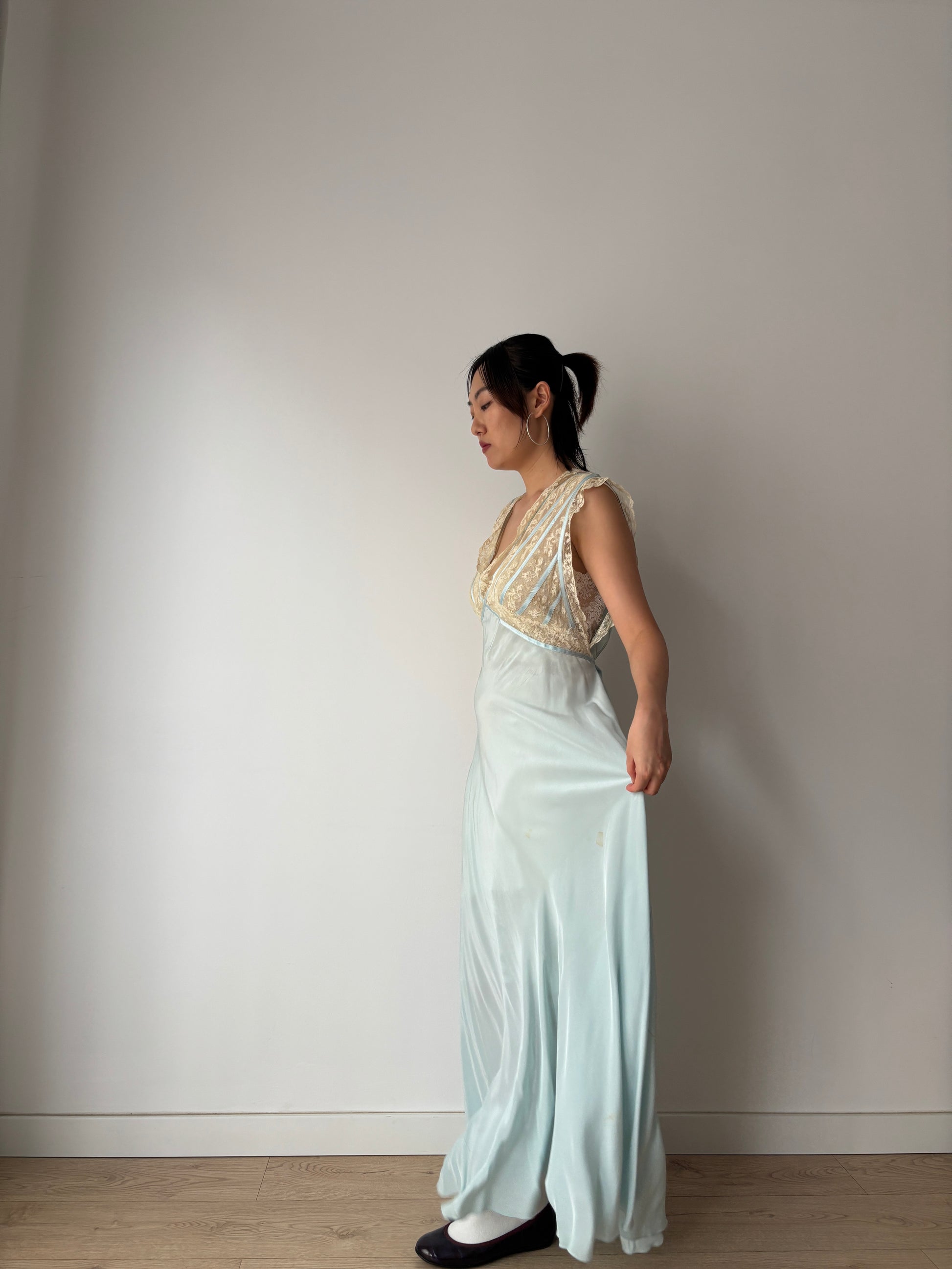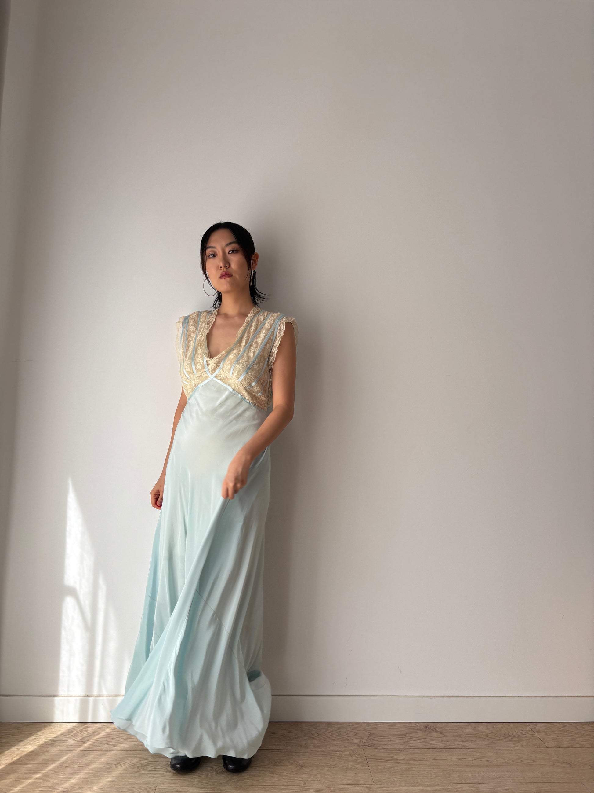 1930s Silk Dress: Antique Pastel Blue Lace Nightgown