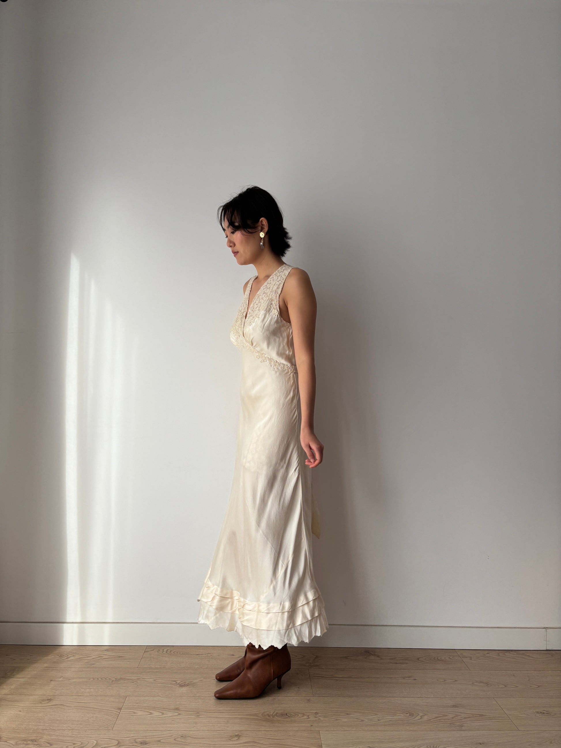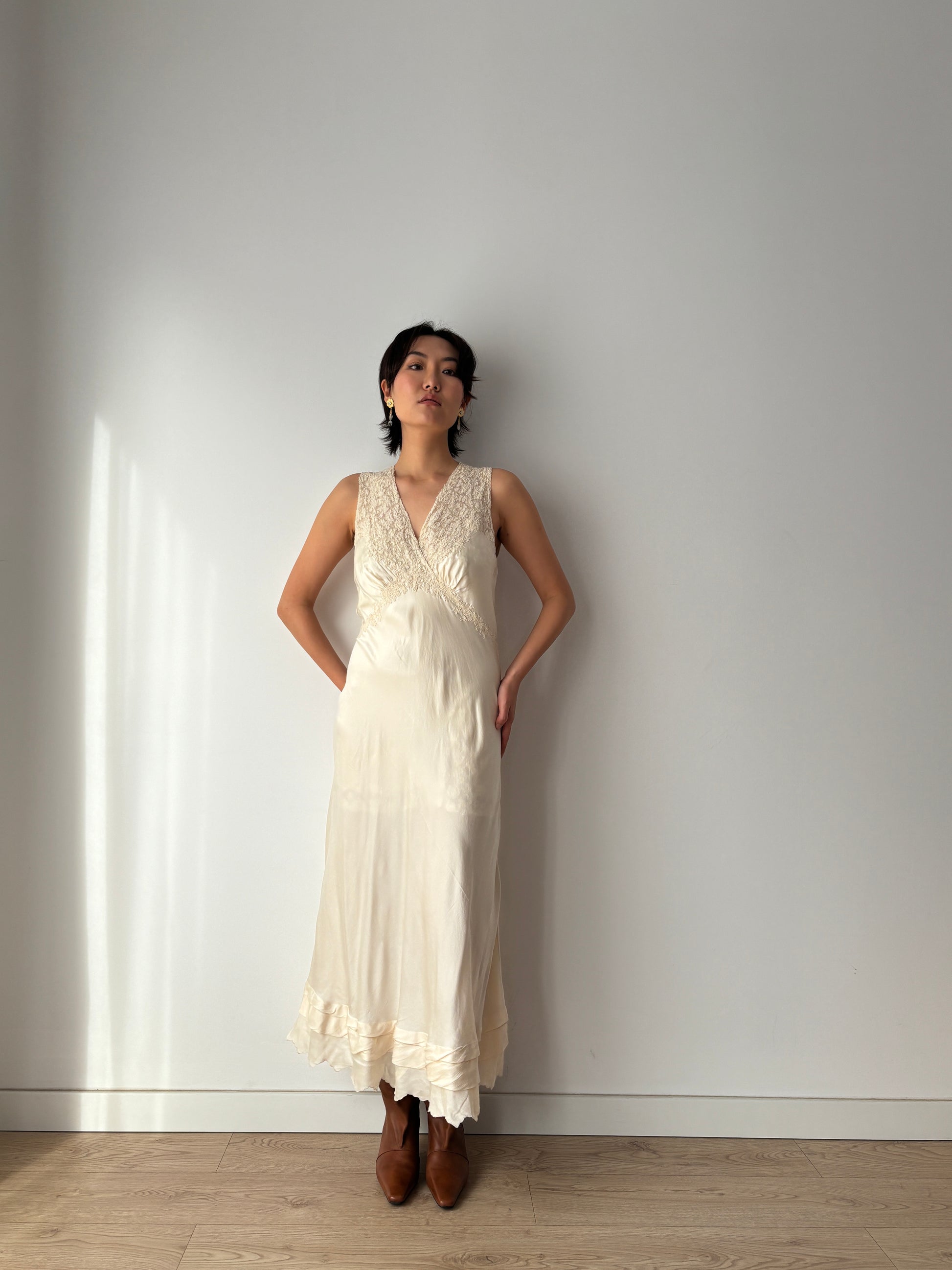 1930s Vintage Silk Lace Bridal Romantic Lace Dress