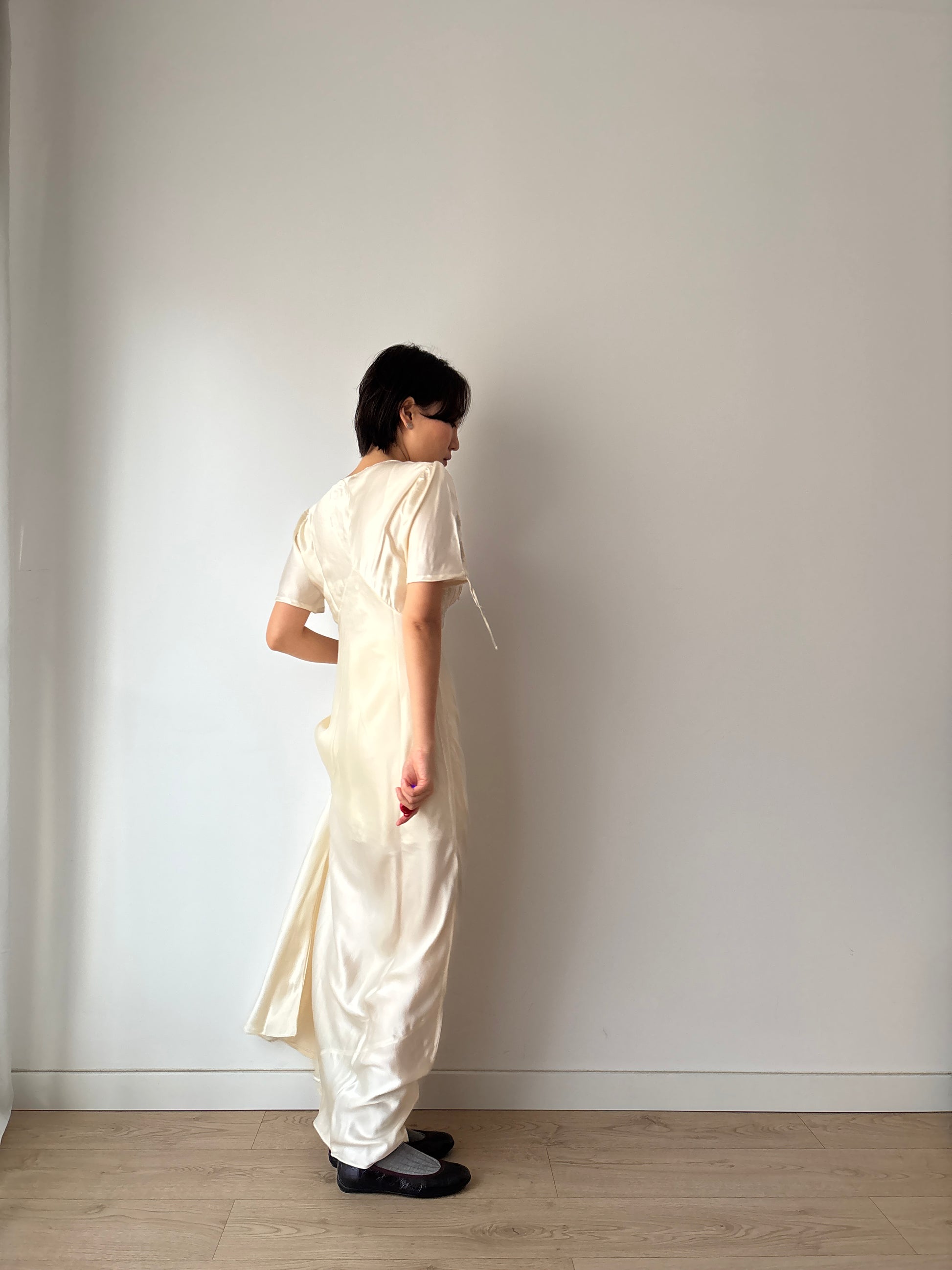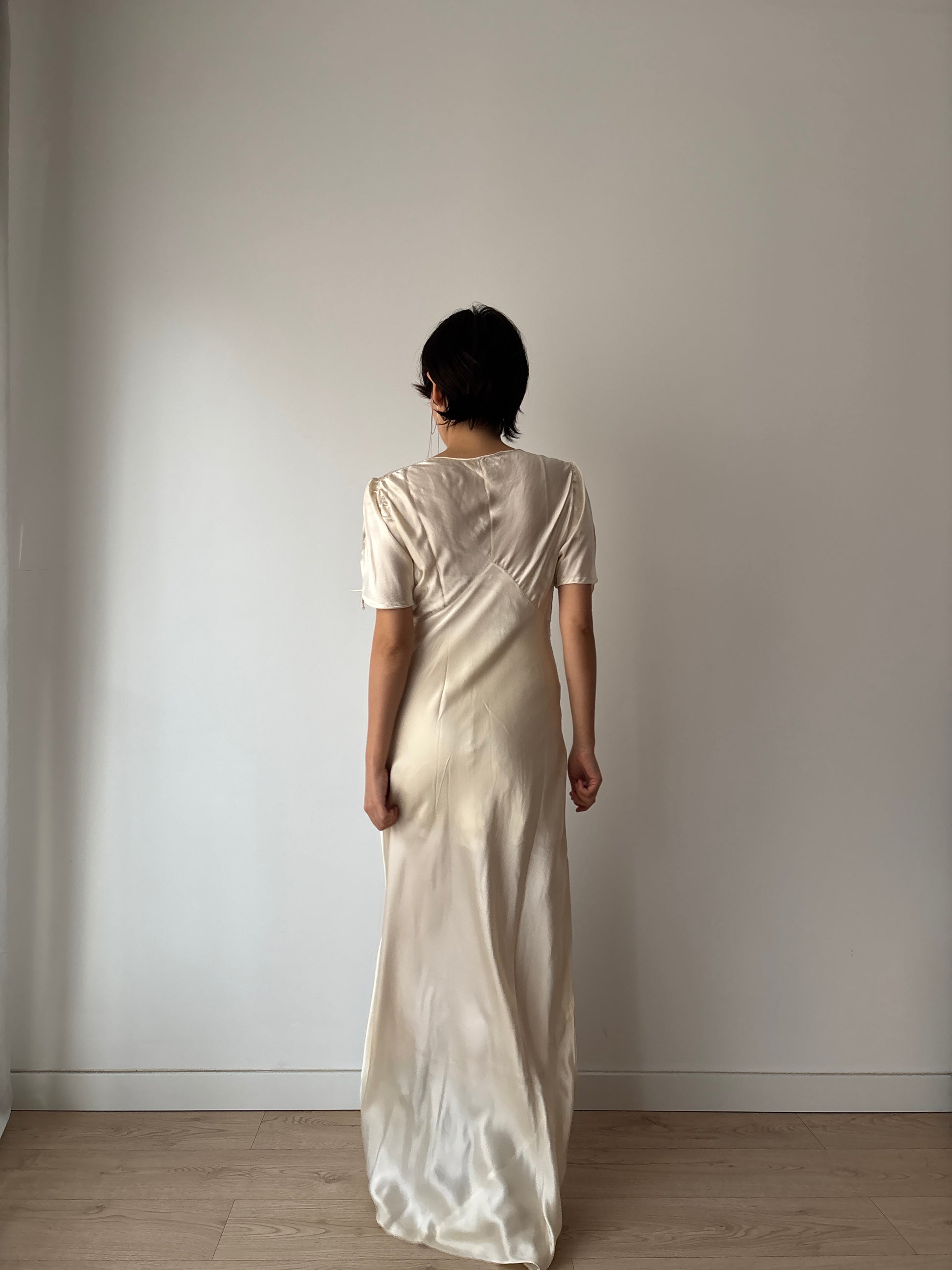 Absolutely lovely silk satin antique dress from the 1930s! Most beautiful silk bias cut gown with lovely lace details, The skirt drapes so beautifully and gives a really flattering body shape