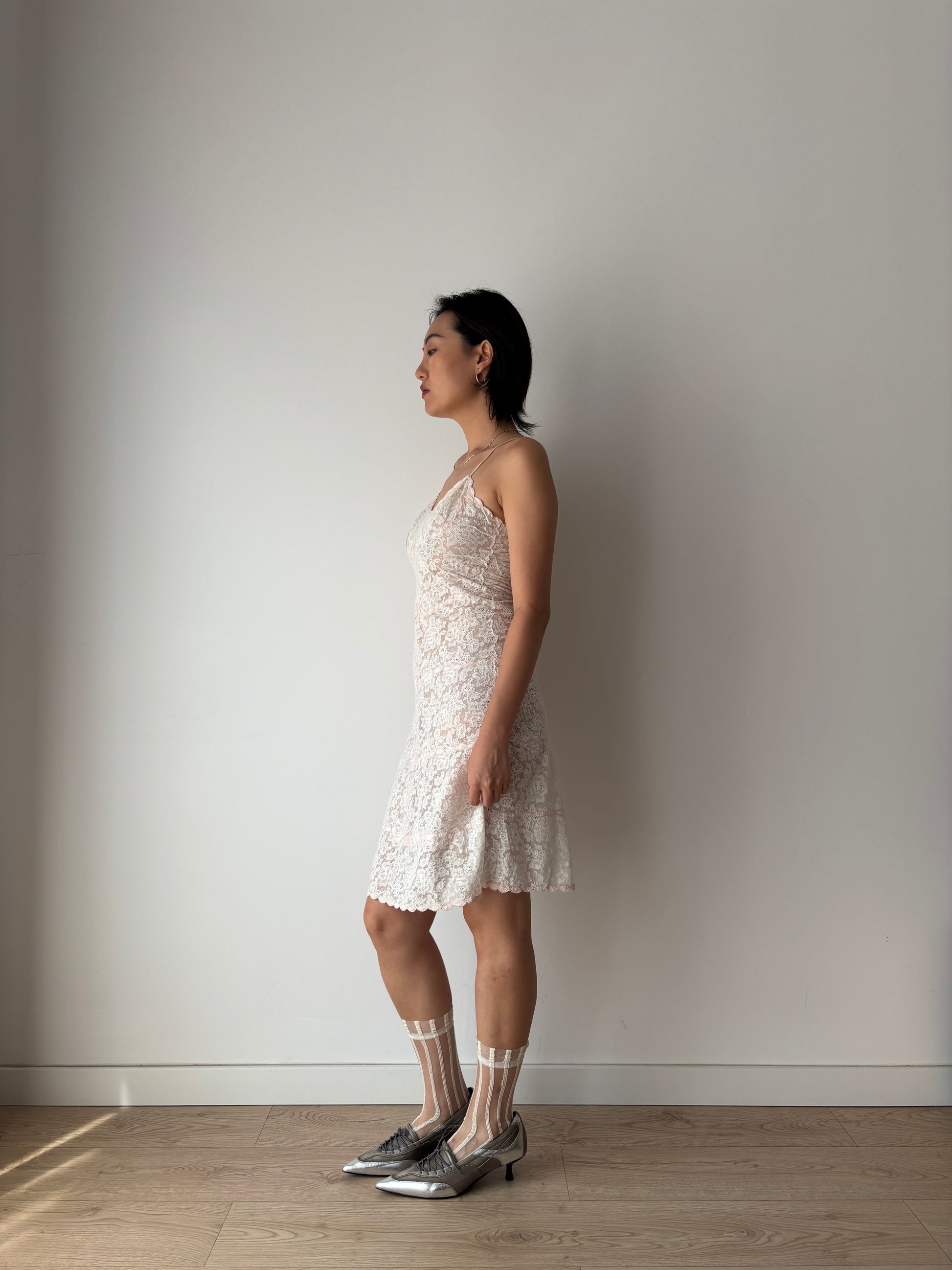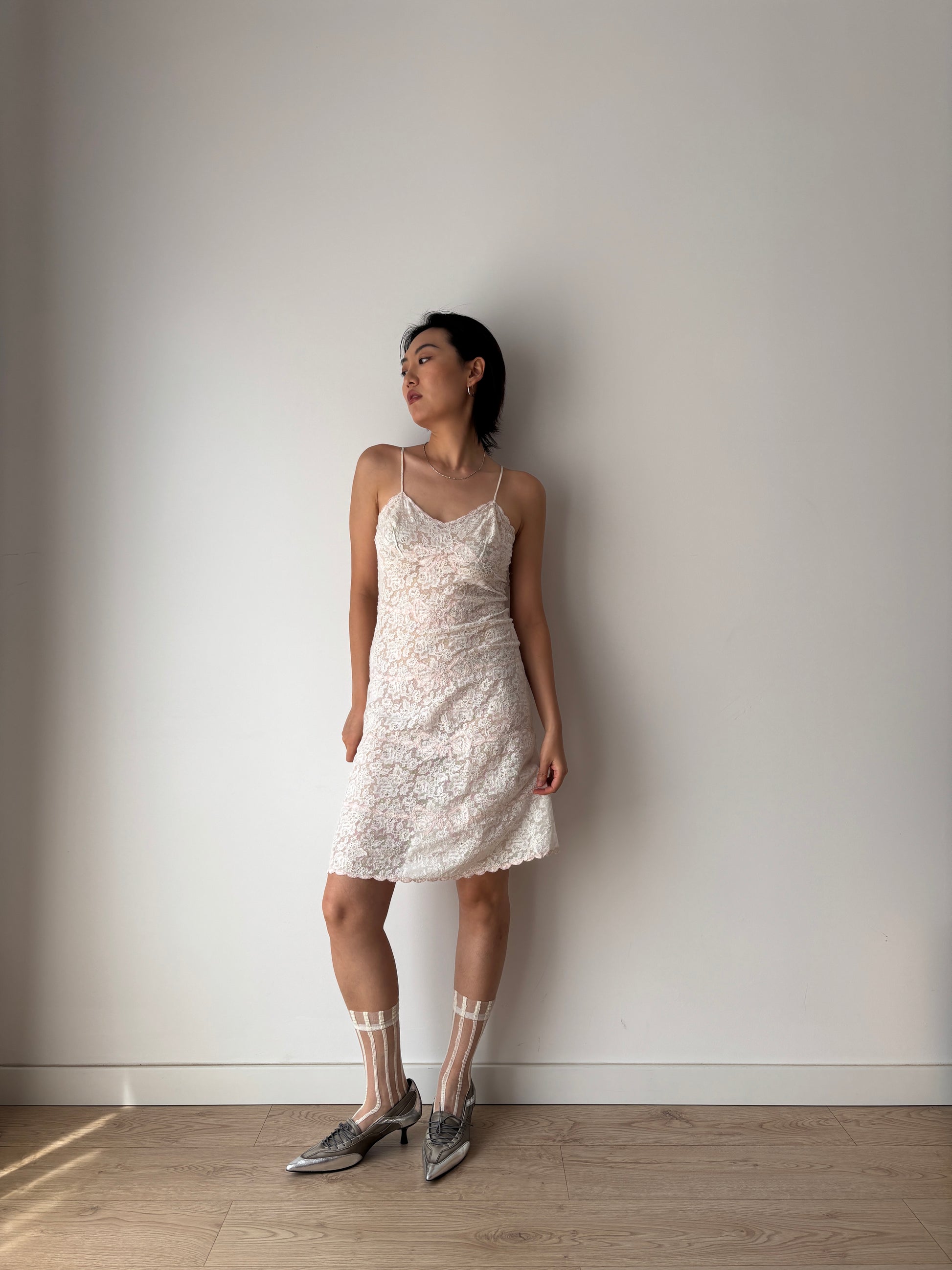 1940s 1950s Antique Pastel Pink Bow Embroidered Lace Cotton Slip underdress