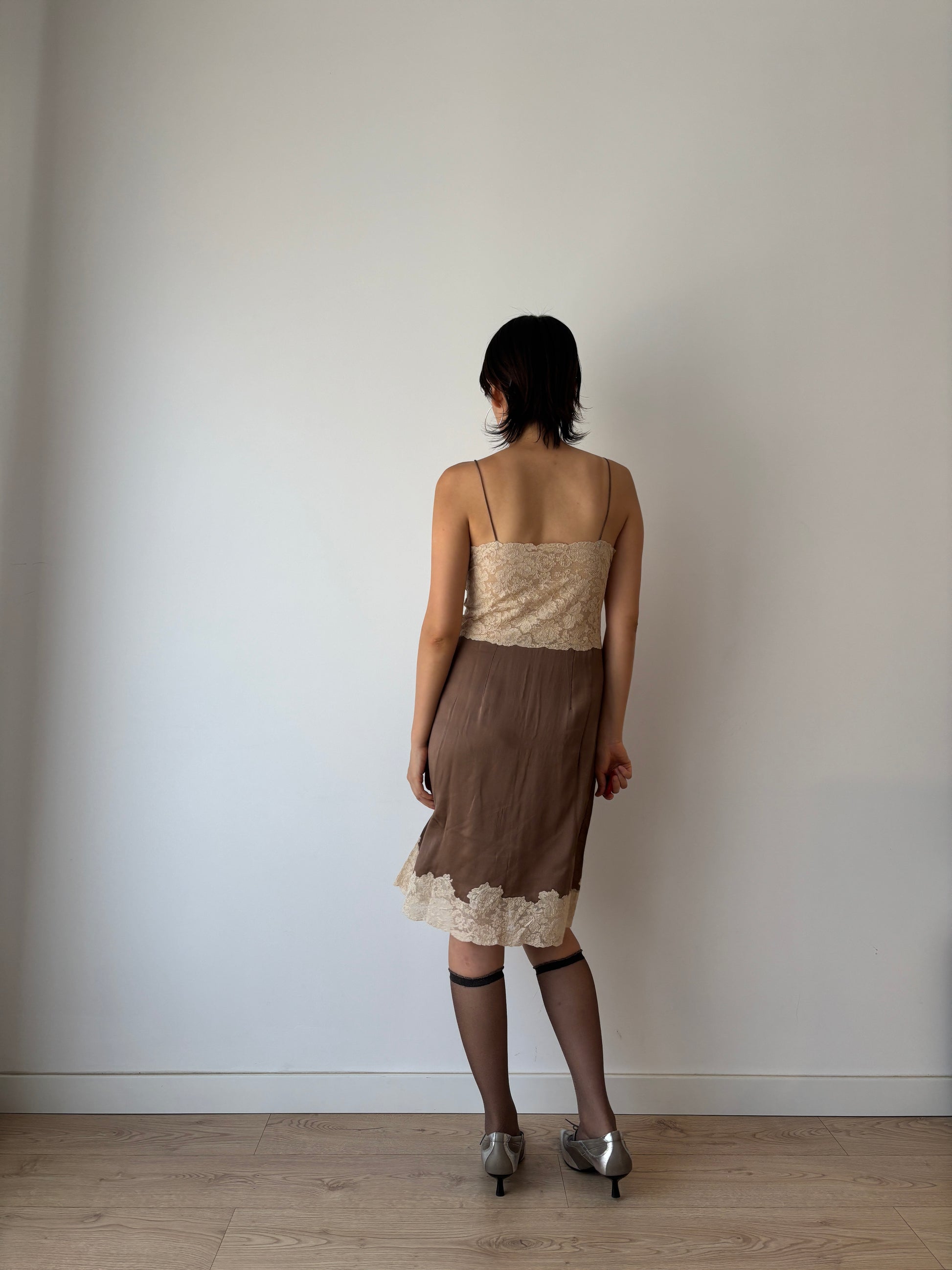 1940s 1950s Antique rare brown french rice Lace pure silk slip dress
