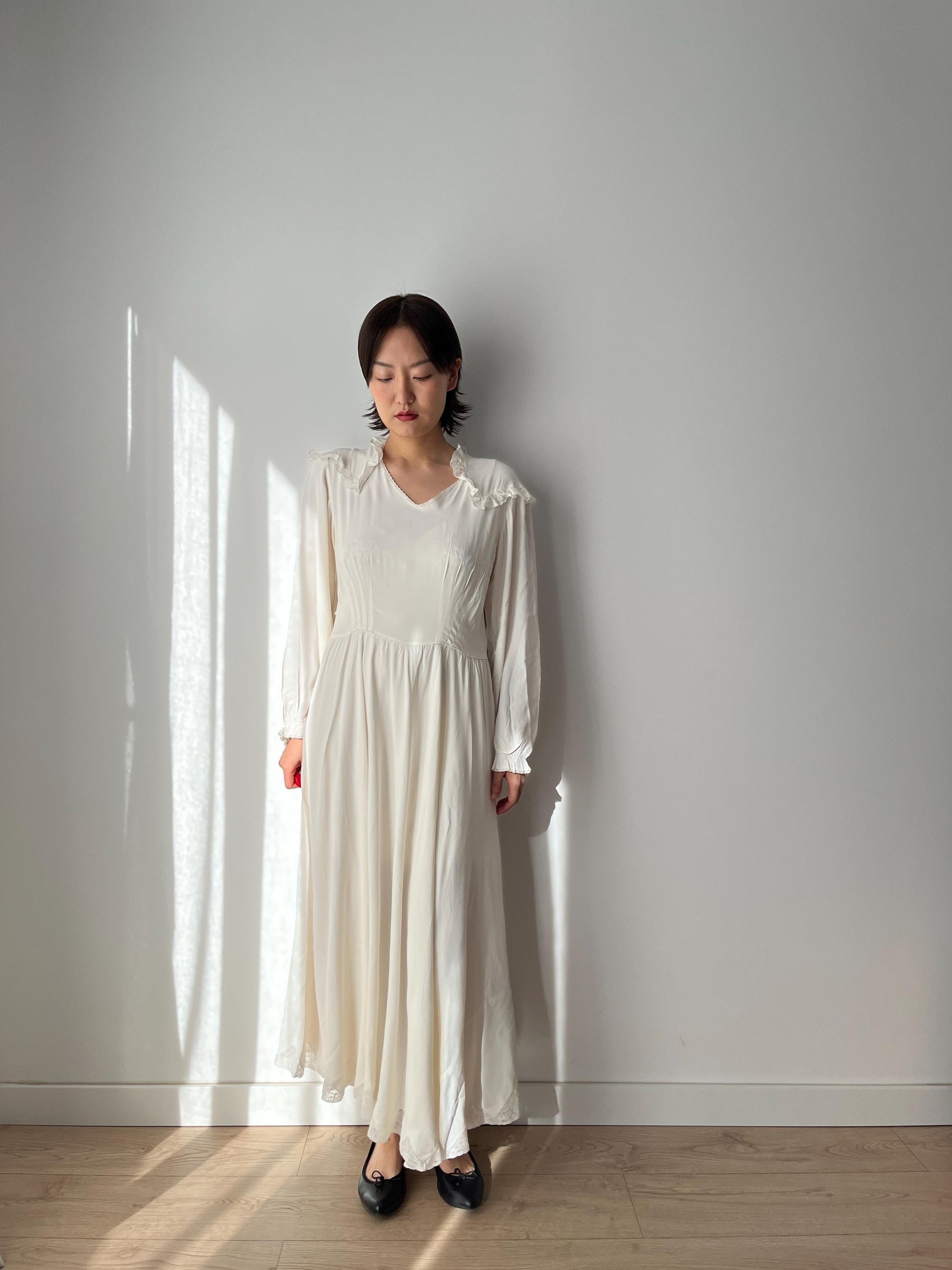 1940s Antique Lace White 100% Pure Silk Liquid Satin Long Maxi dress