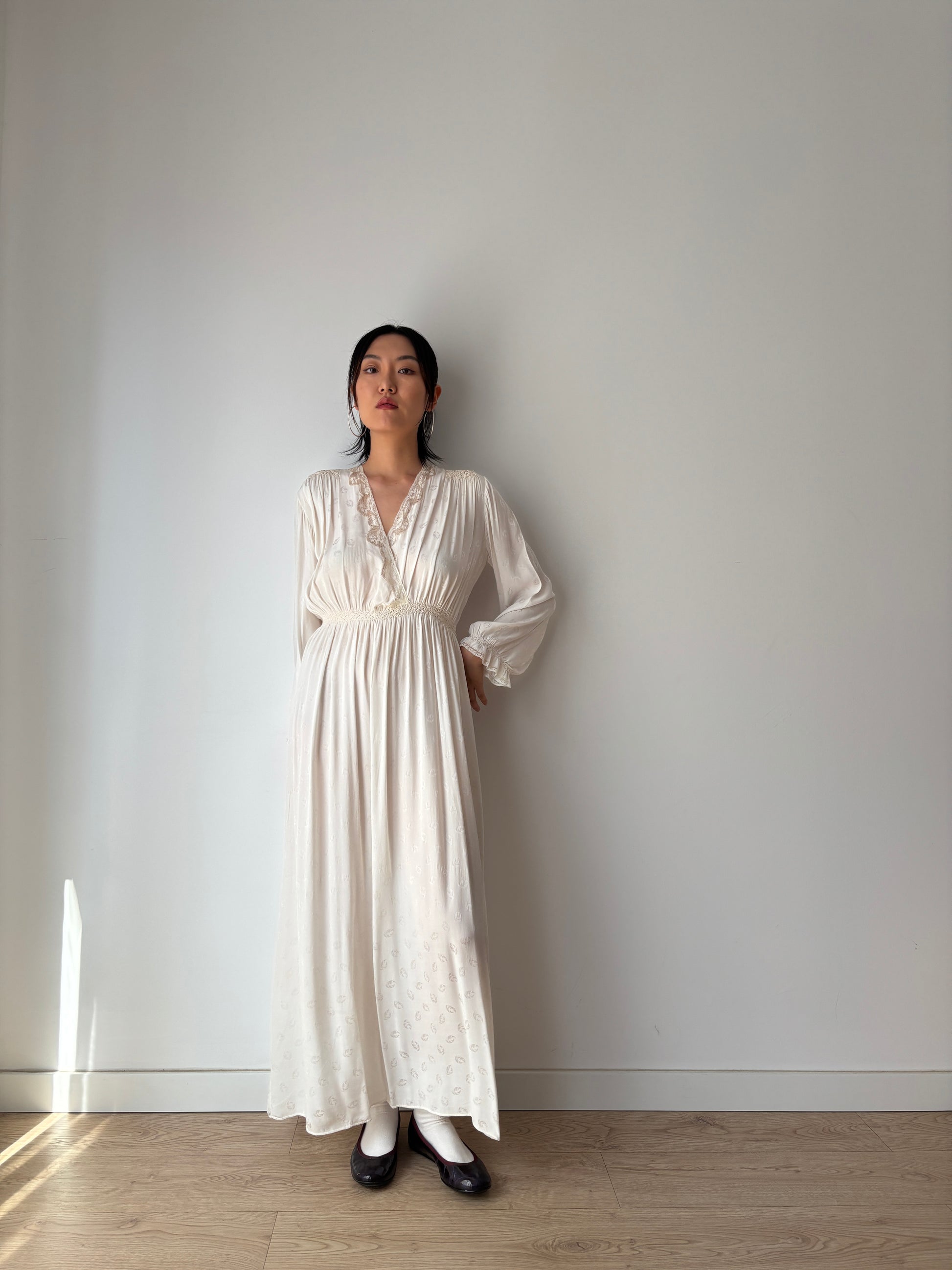 Absolutely lovely vintage dress from the 1940s! beautiful long sleeve bridal nightgown can be worn as an event dress or nightdress.
