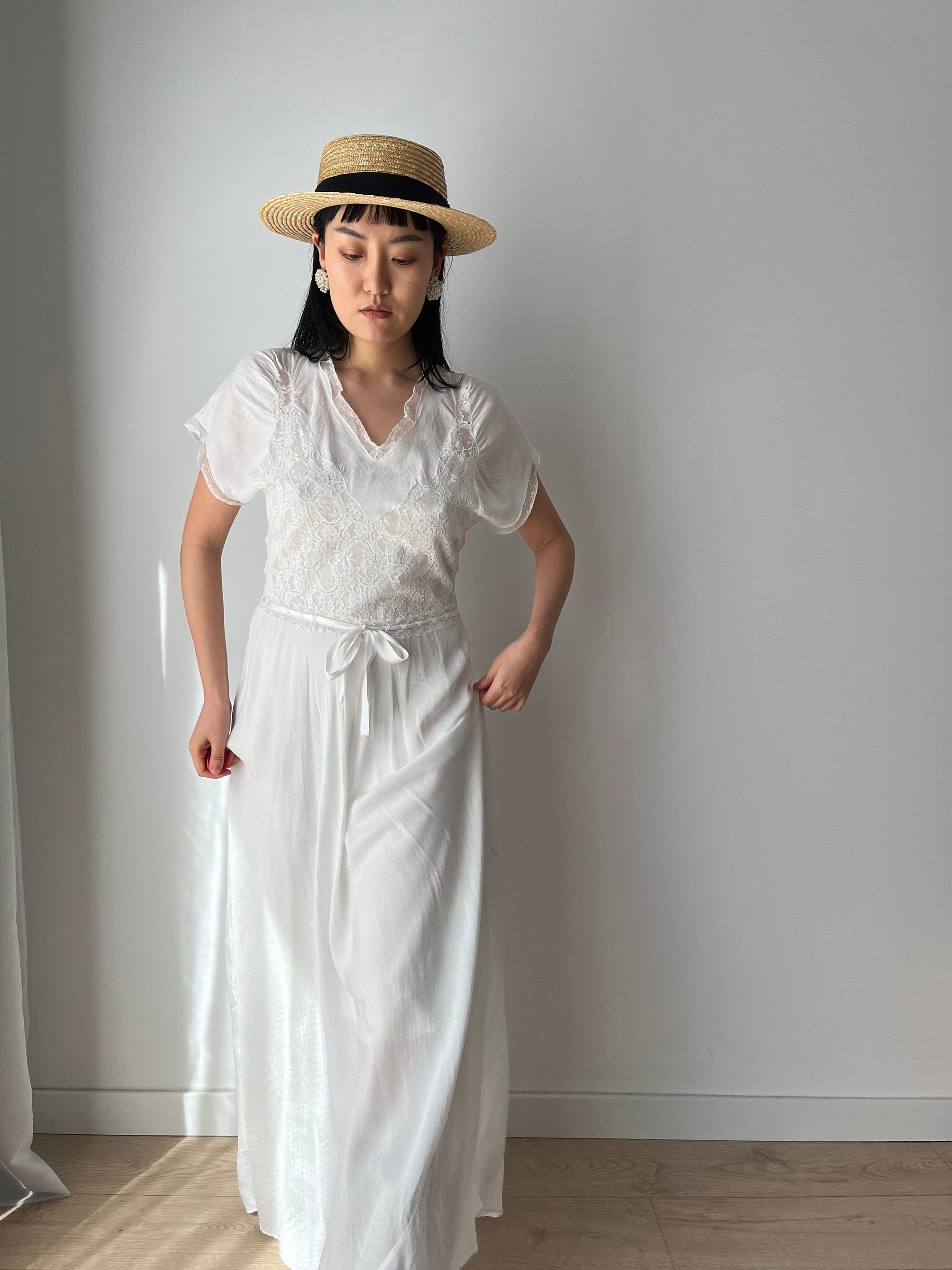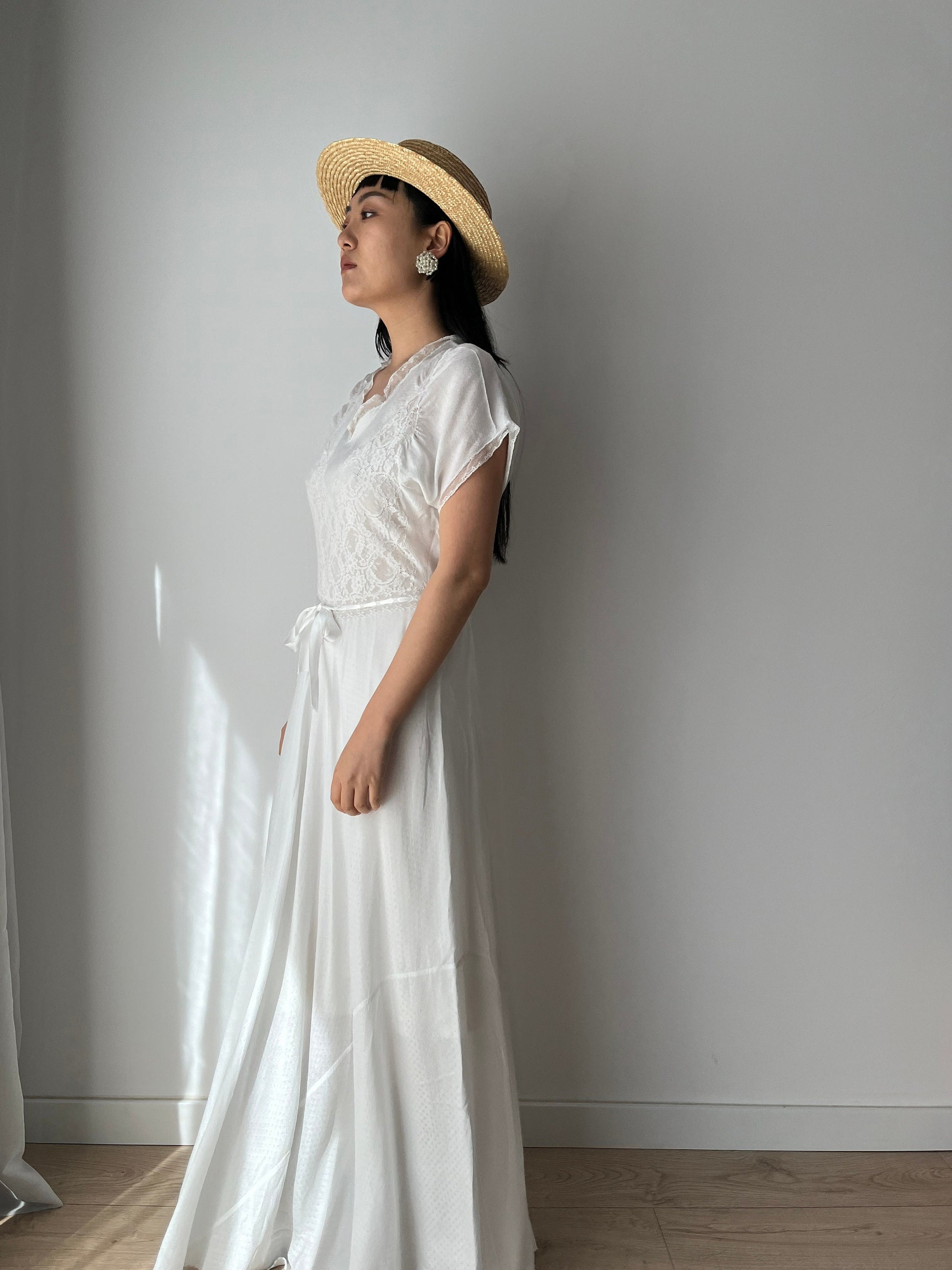 1930s Antique Bias Cut Rayon Embroidered Lace Bridal Dress