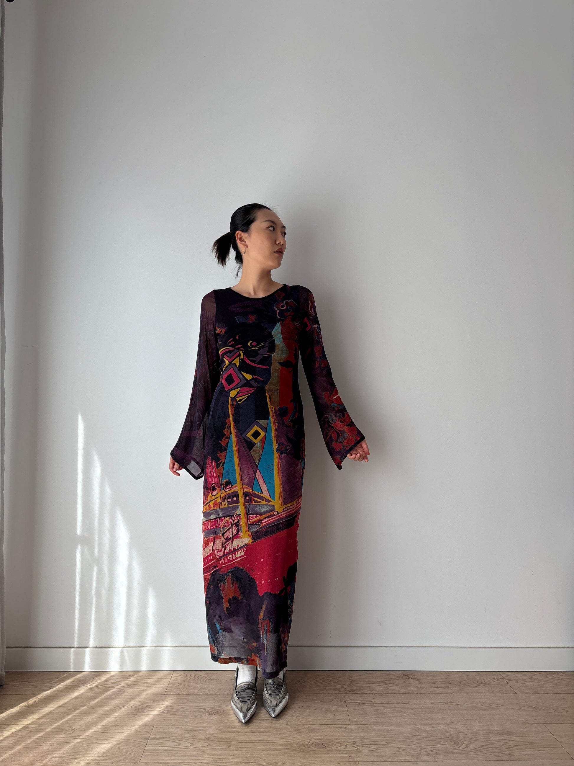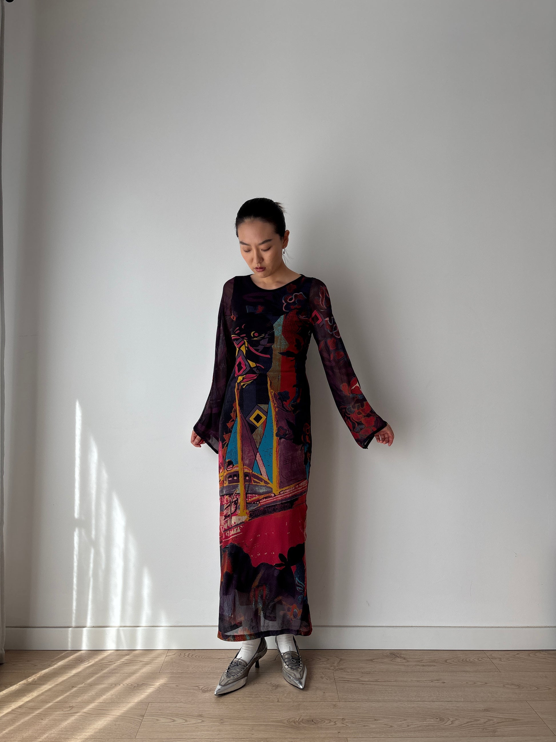 1990s Vintage Y2K Save The Queen Long Sleeves Maxi Dress in Size M
