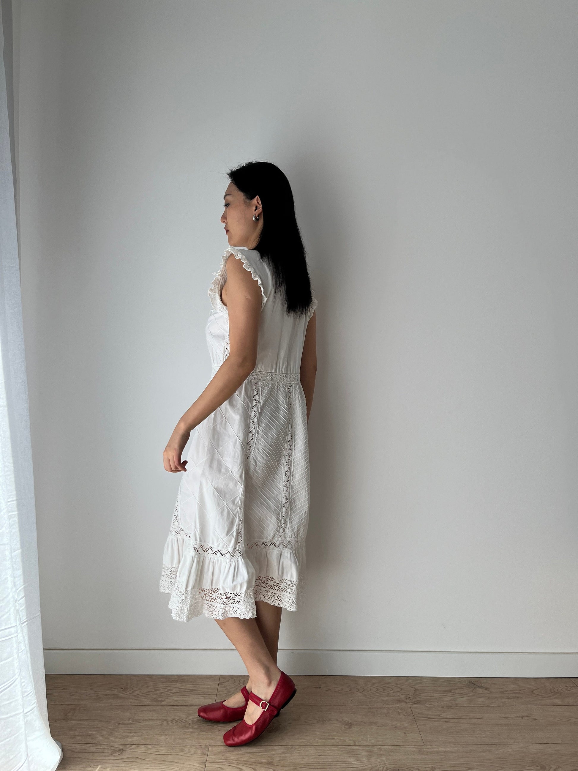 Beautiful romantic antique Victorian Edwardian lace white cotton lawn lingerie dress