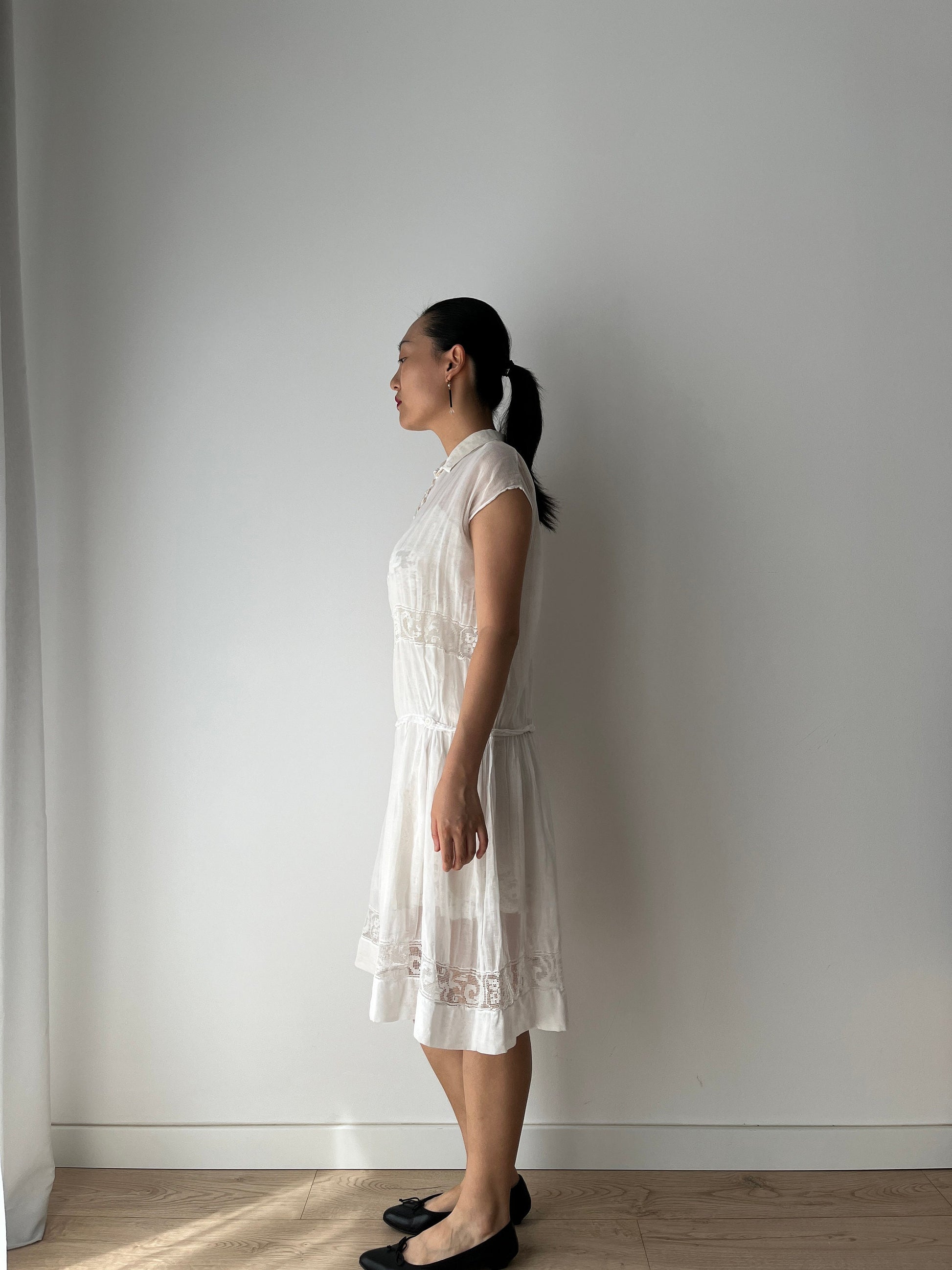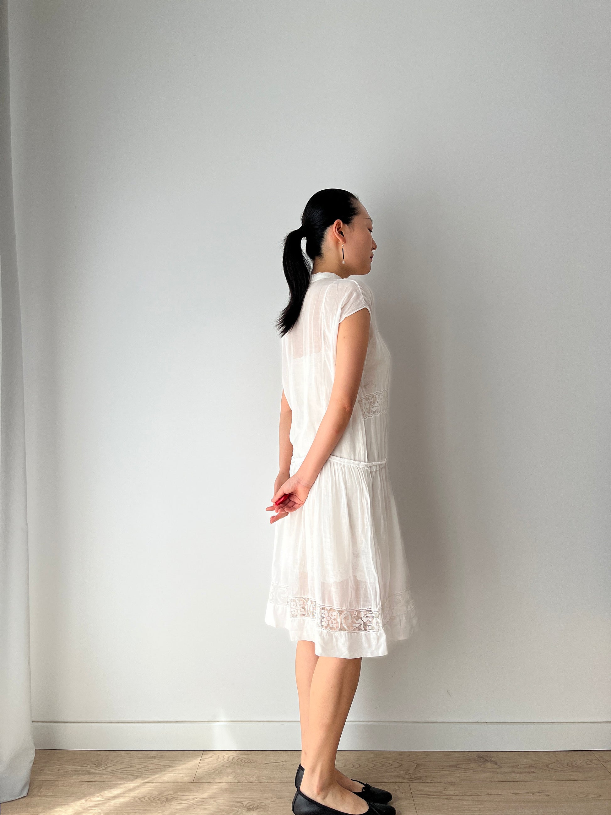 Beautiful and romantic antique Edwardian lace loose fit white nightgown, button neckline