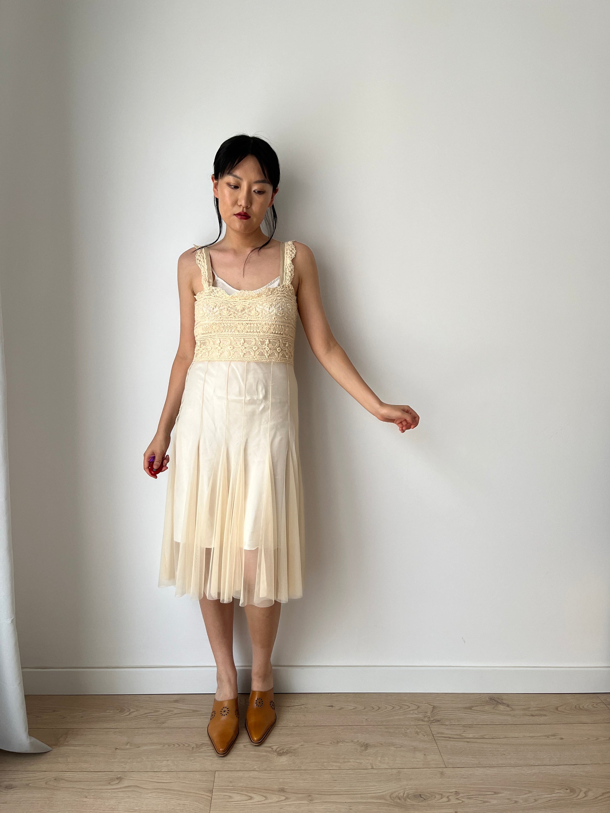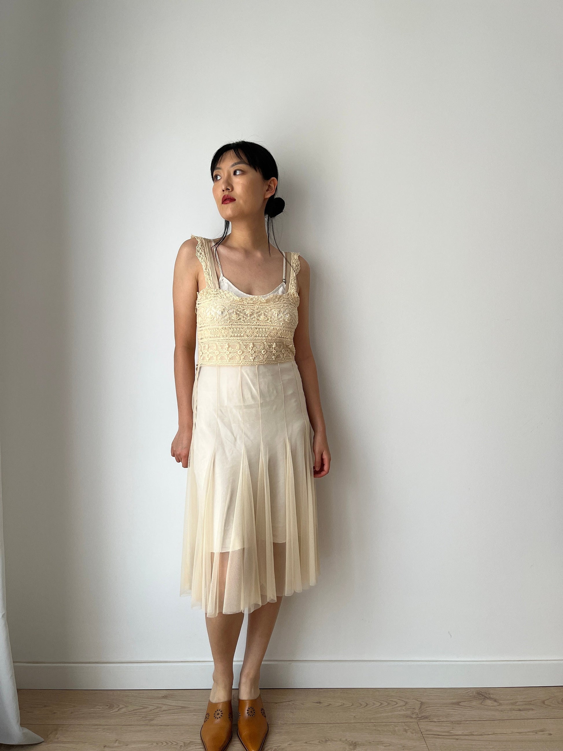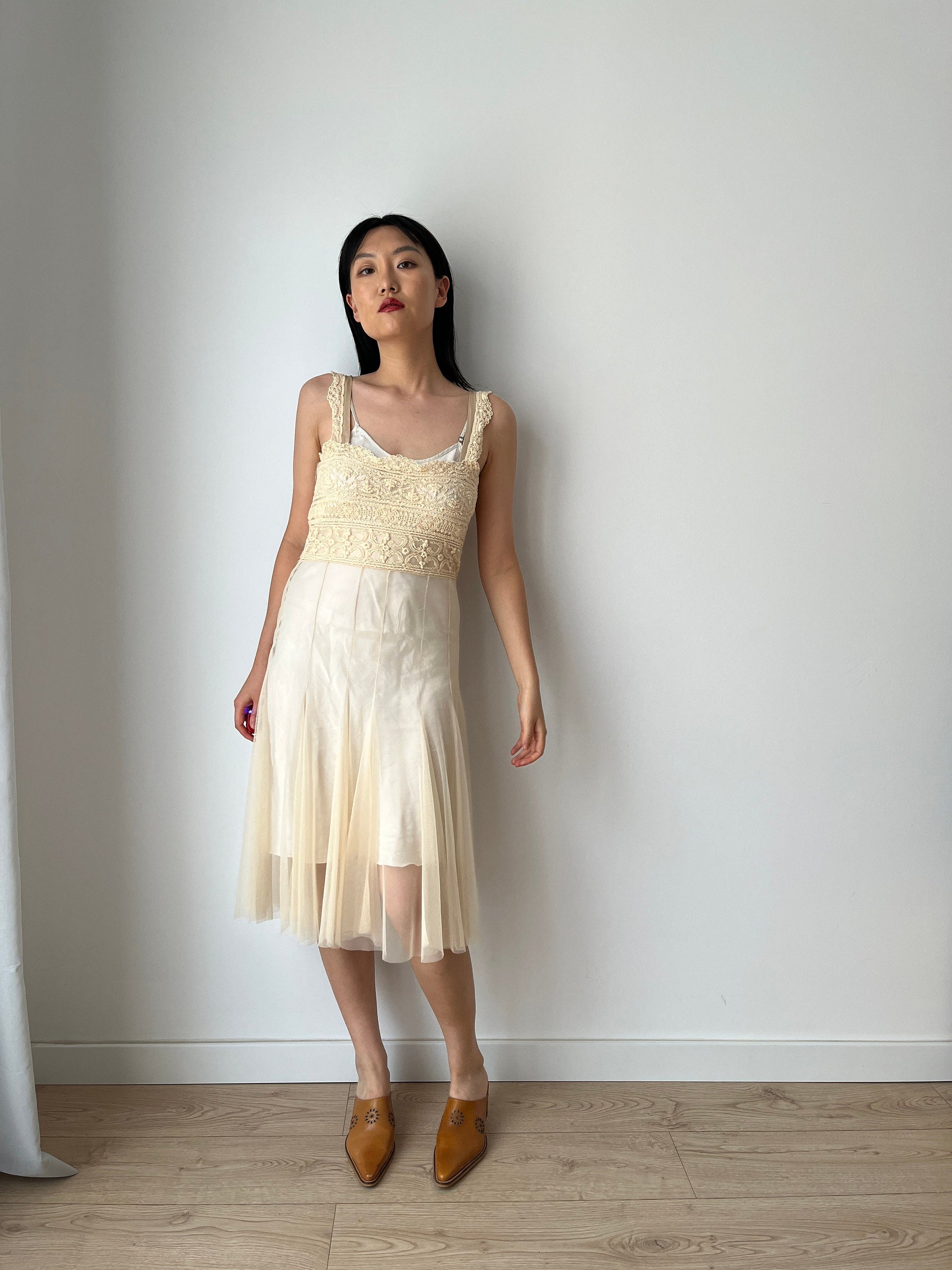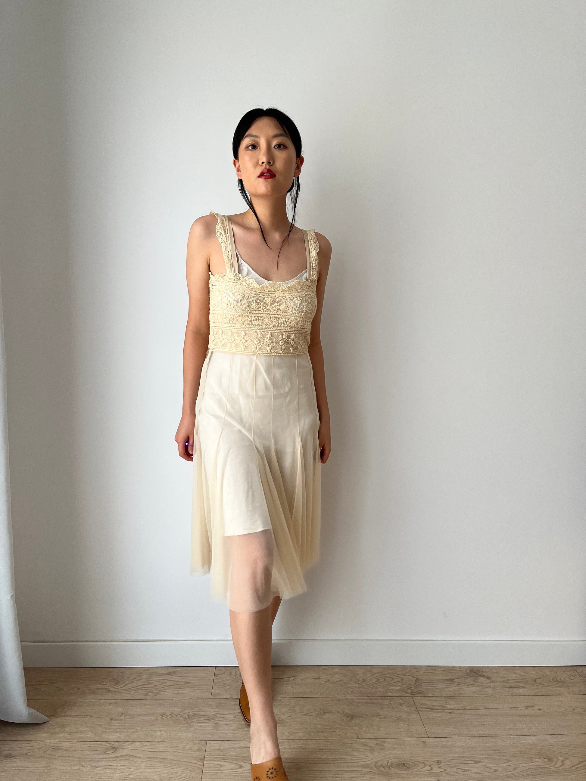 Size: around size S/M, Model wears size S, 36, 166cm and 53kg Full length 112cm pit to pit: 37cm waist: 35cm
