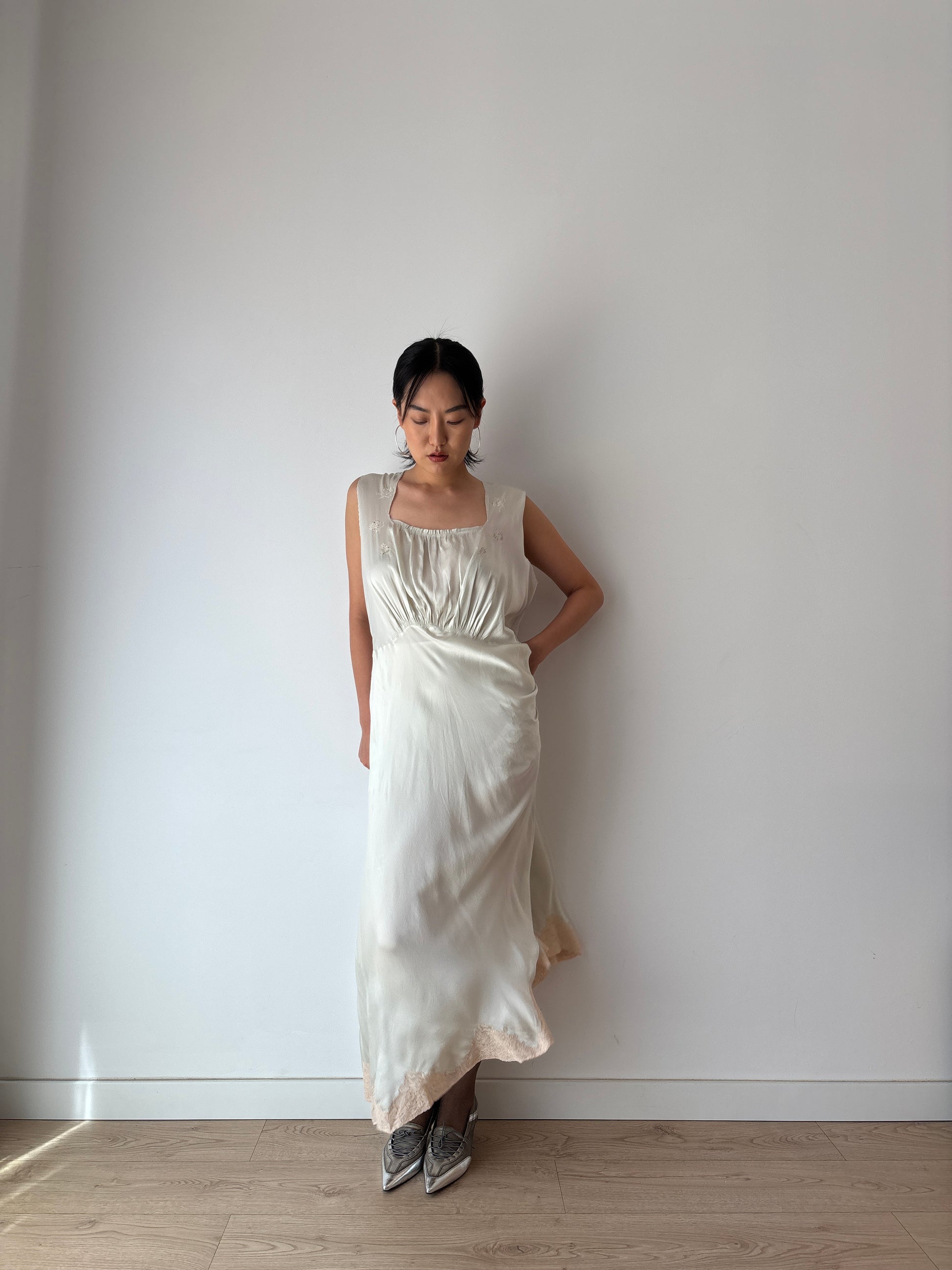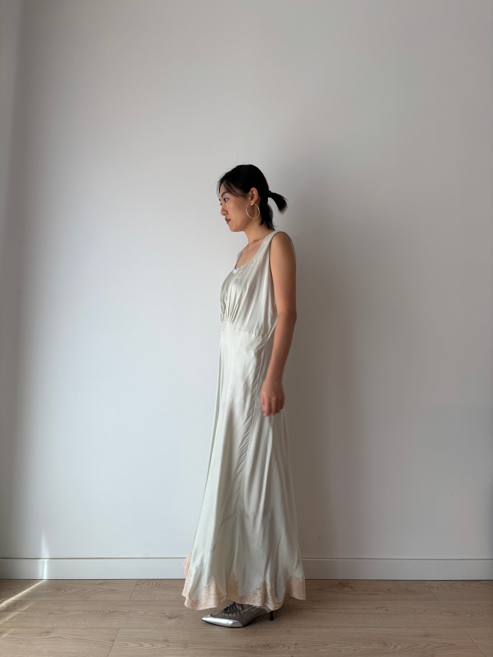 Antique Vintage 1930s pale babe blue bias cut nightgown maxi lingerie silk dress