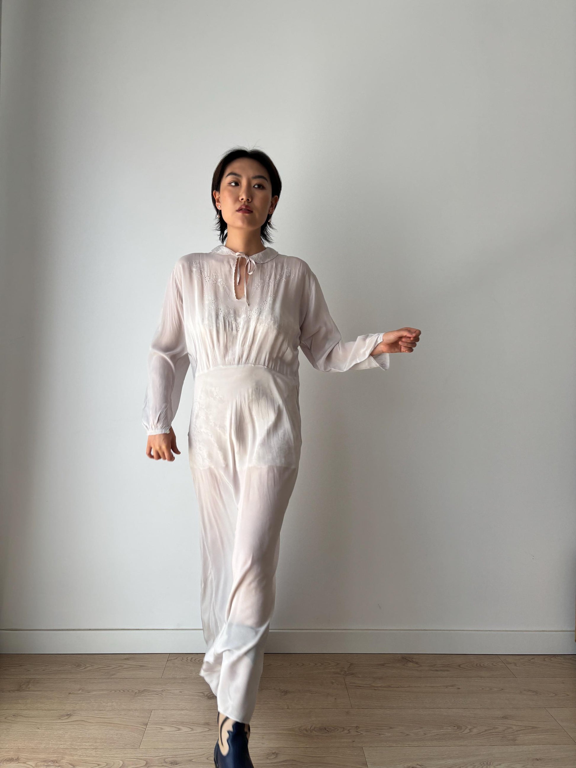 Antique 1930s bias cut liquid pure silk chiffon crepe romantic nightdress