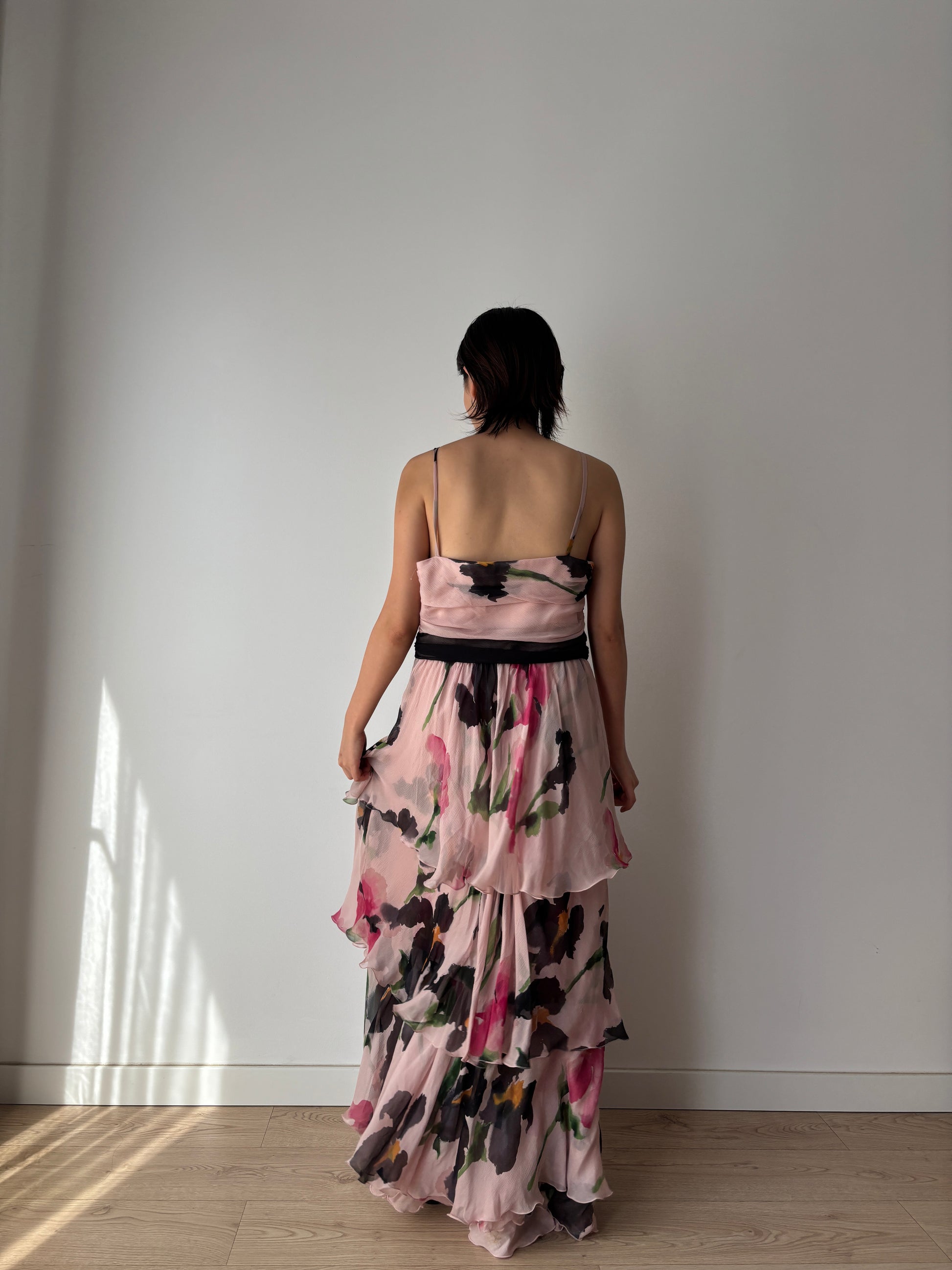 Moschino Vintage 2000s Y2K Silk Chiffon Dress, Floral Print Fairy Maxi Dress