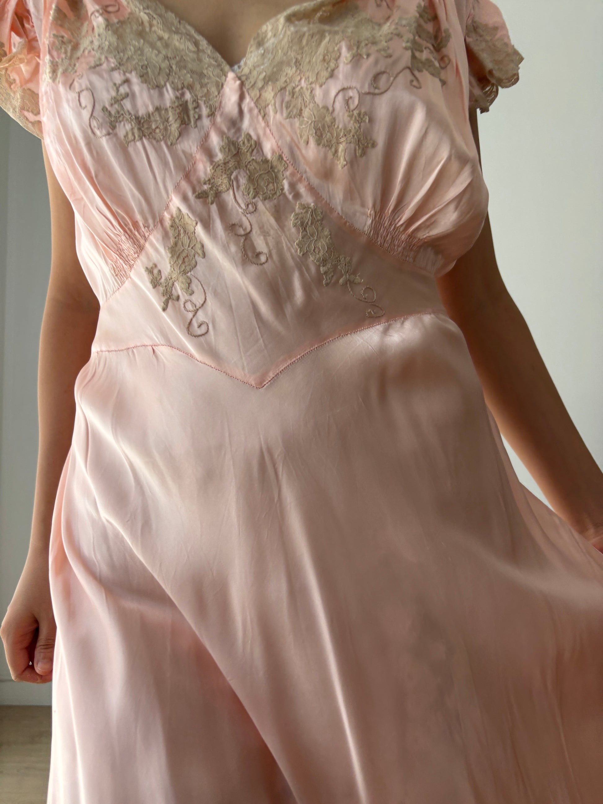 Rare! Vintage antique retro 1930s 1940s lace embroidered silk satin bias cut dress