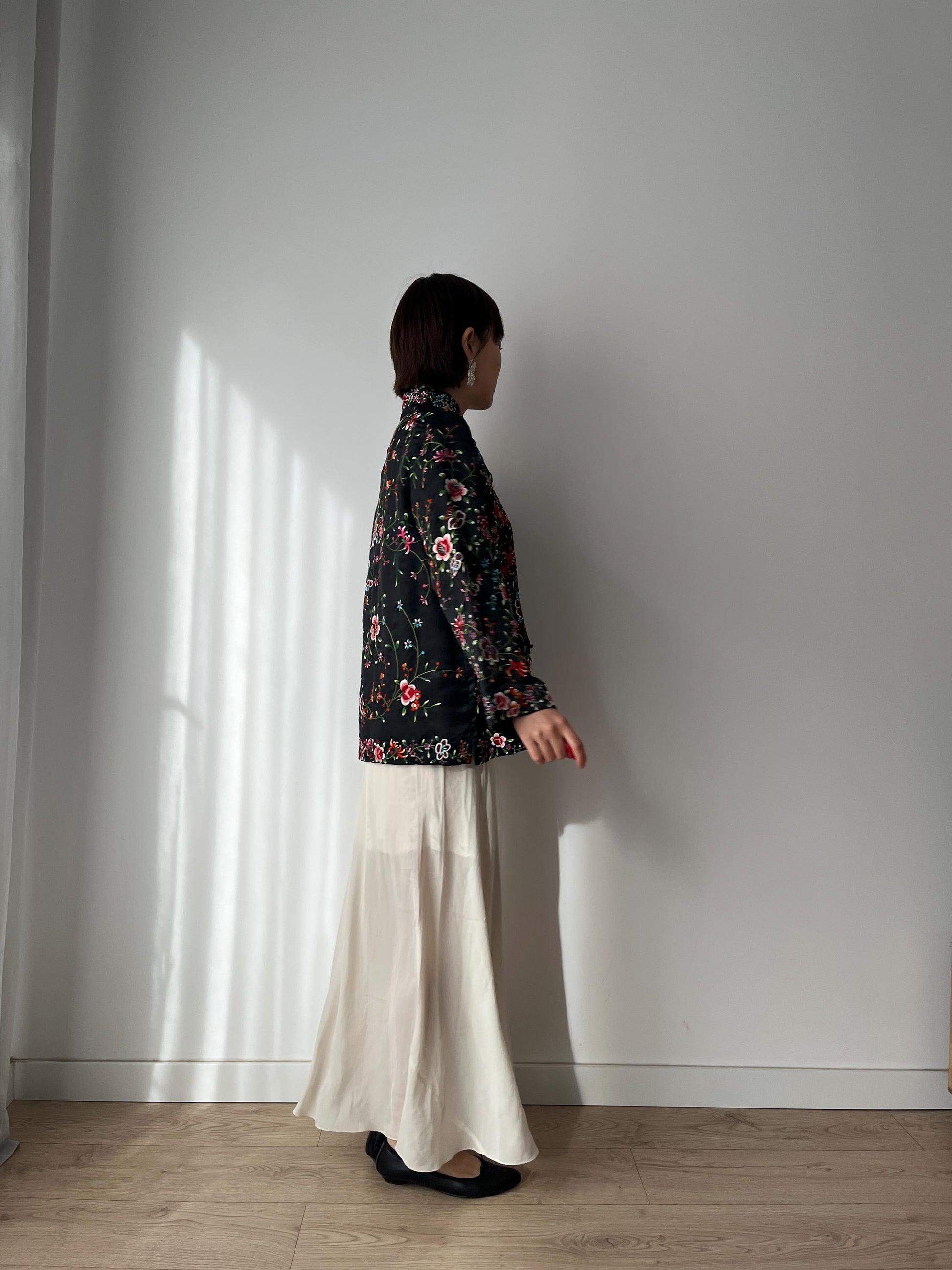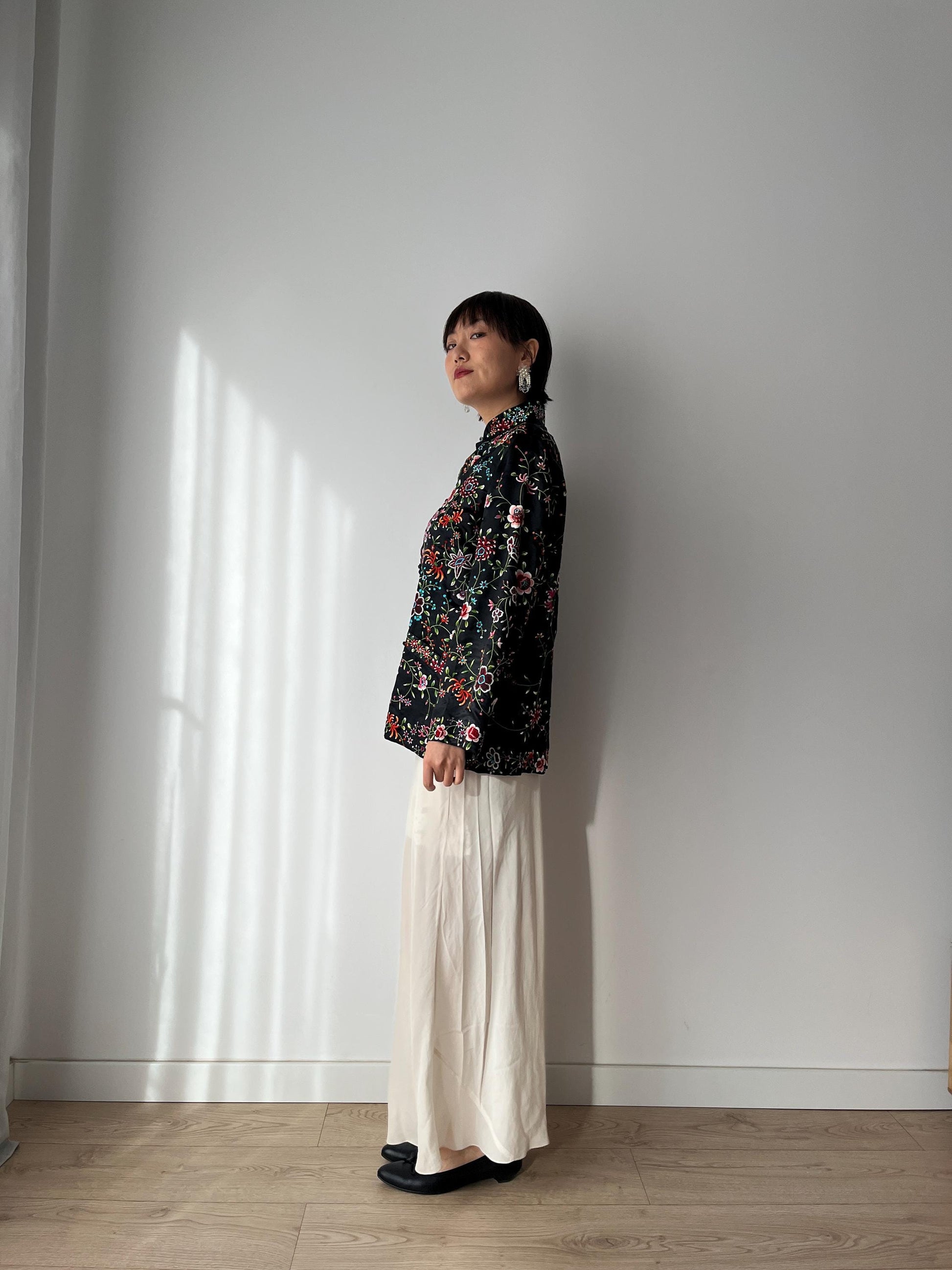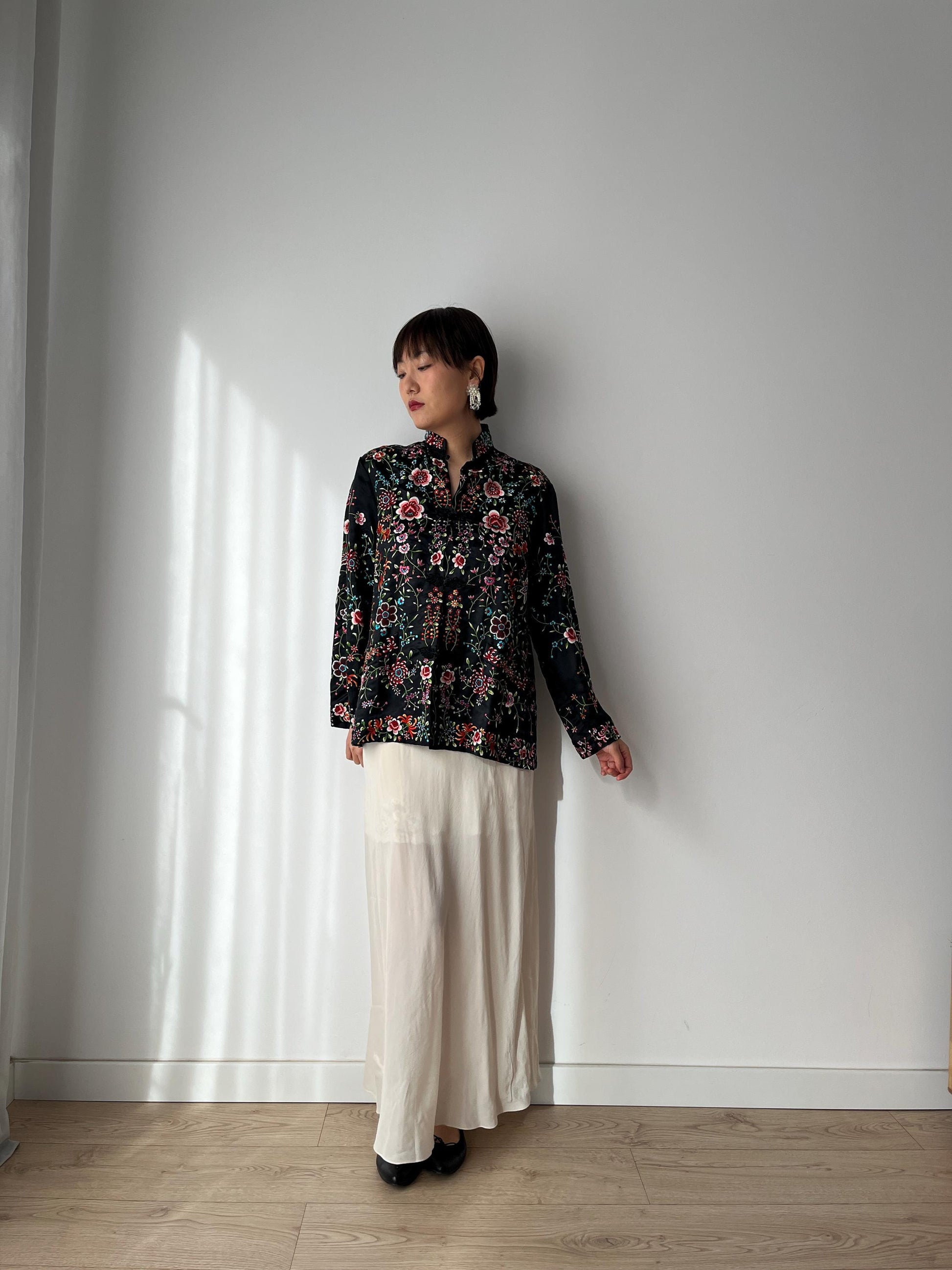 Vintage 1920s style 1950s Chinese Flower Hand Embroidered Kimono Cheongsam Jacket