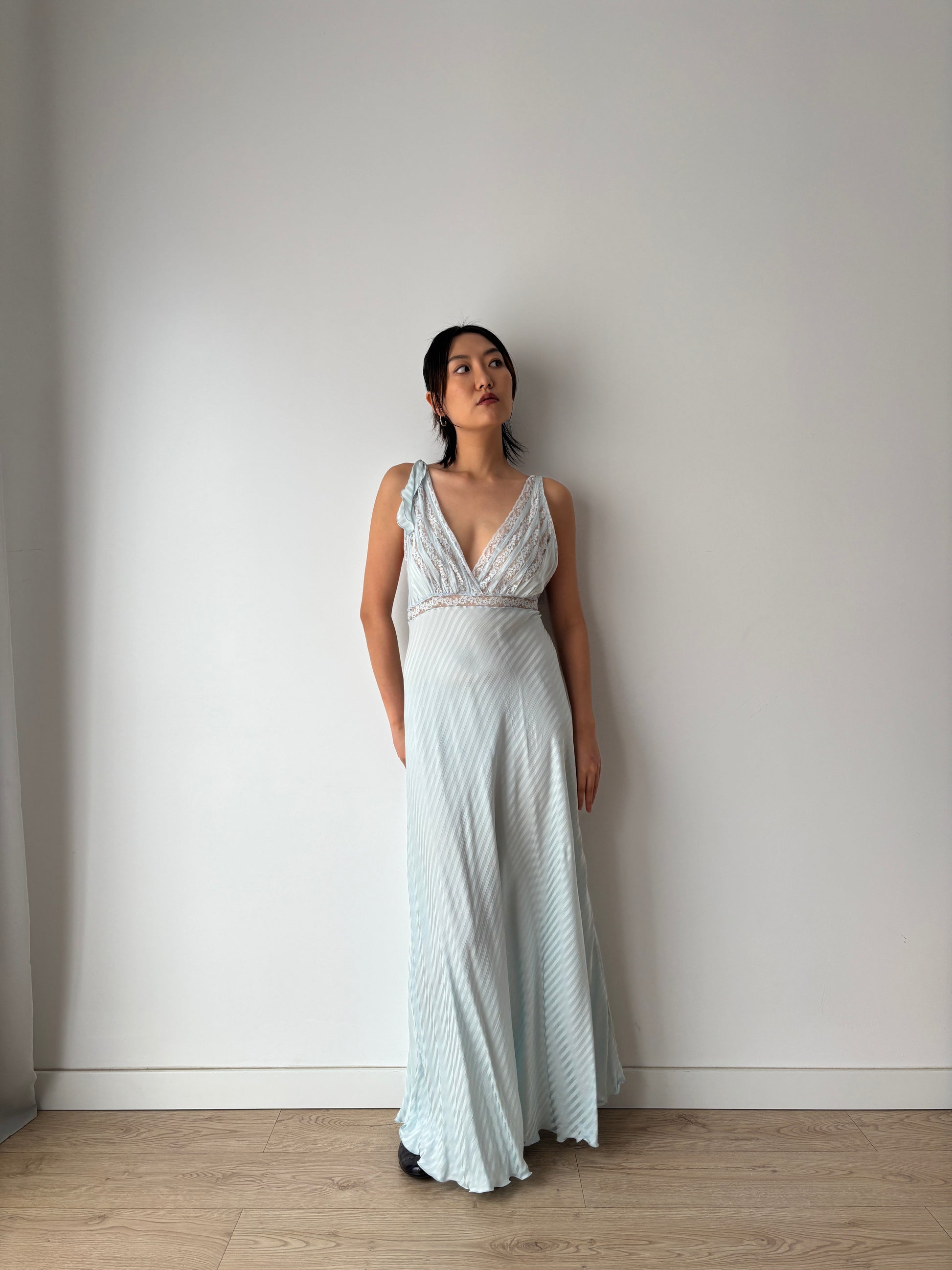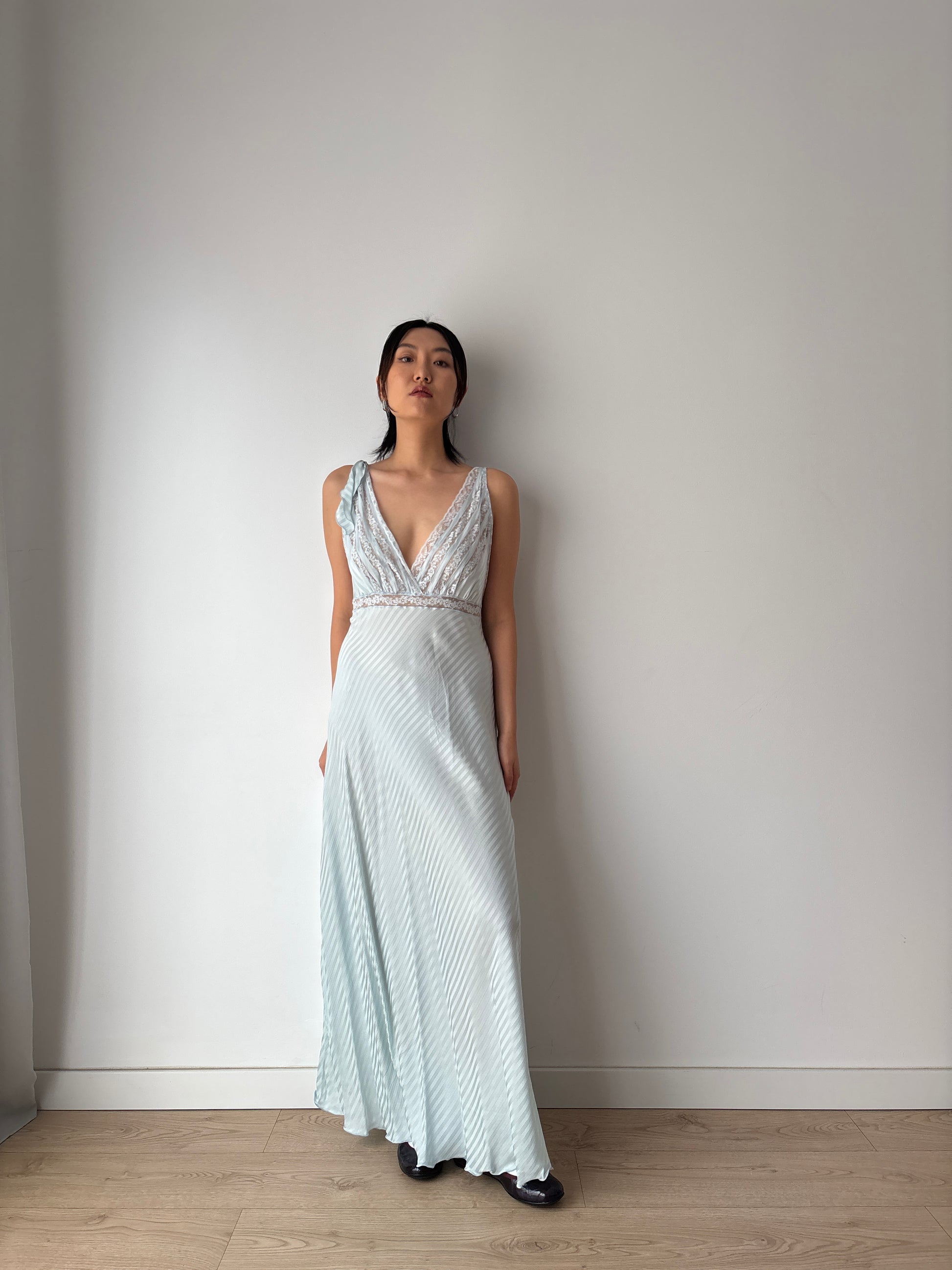 Vintage bias Cut Negligee Pure Silk lace Nightgown