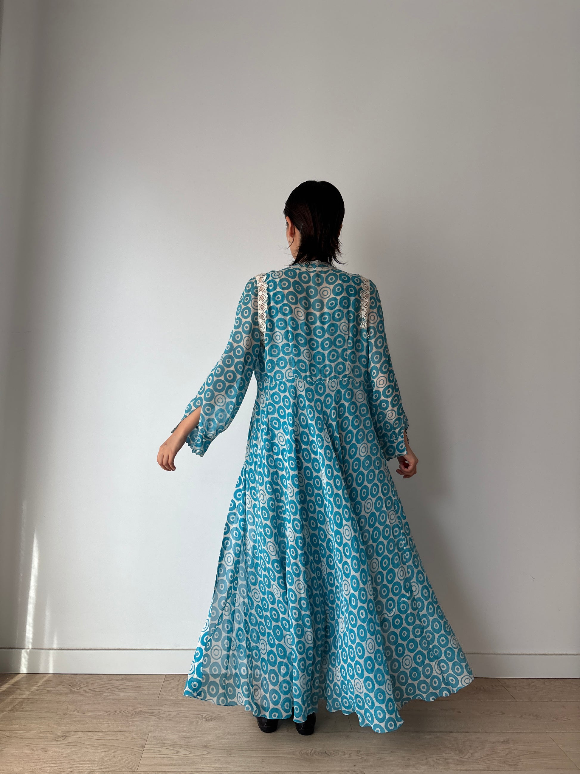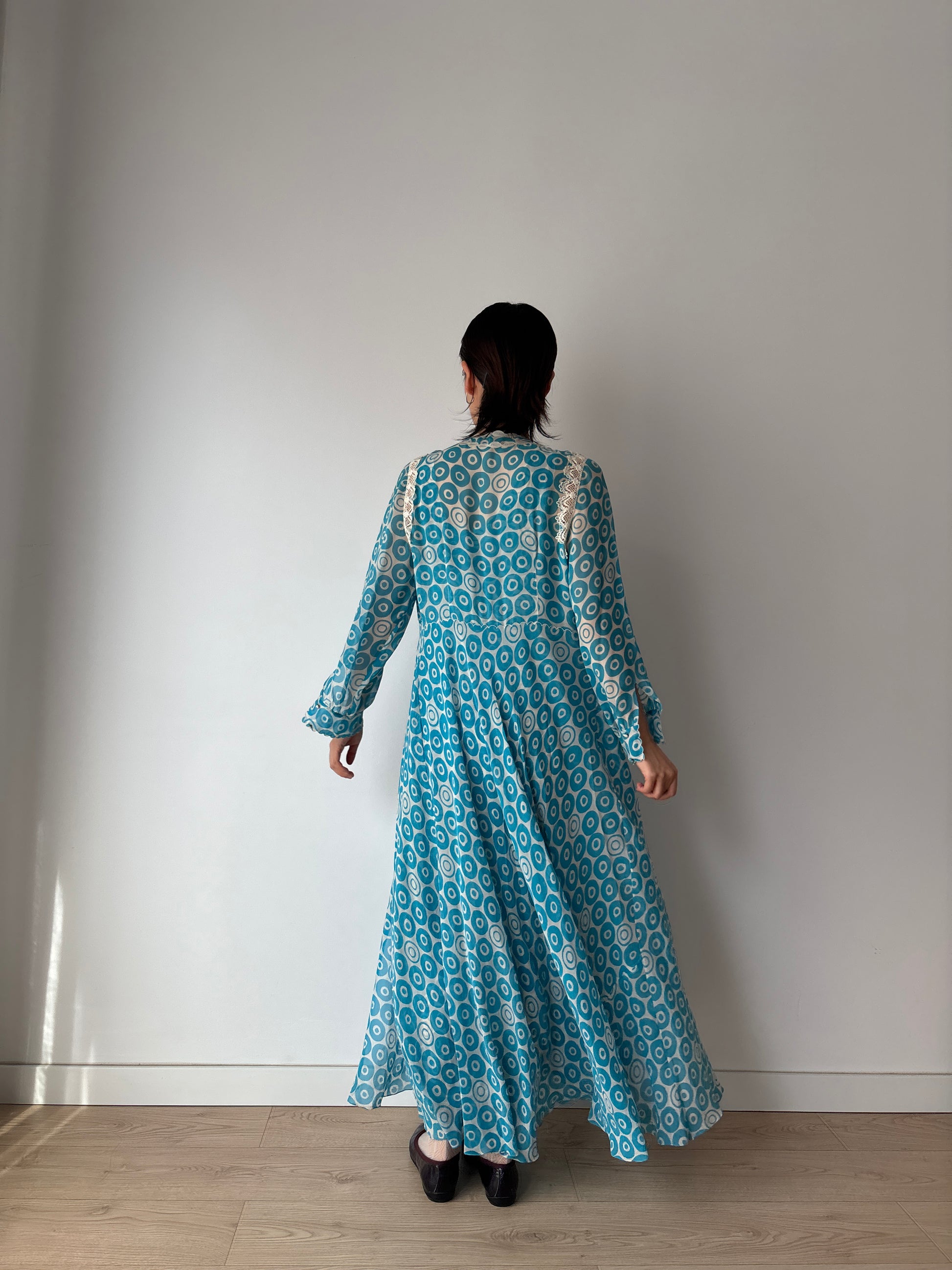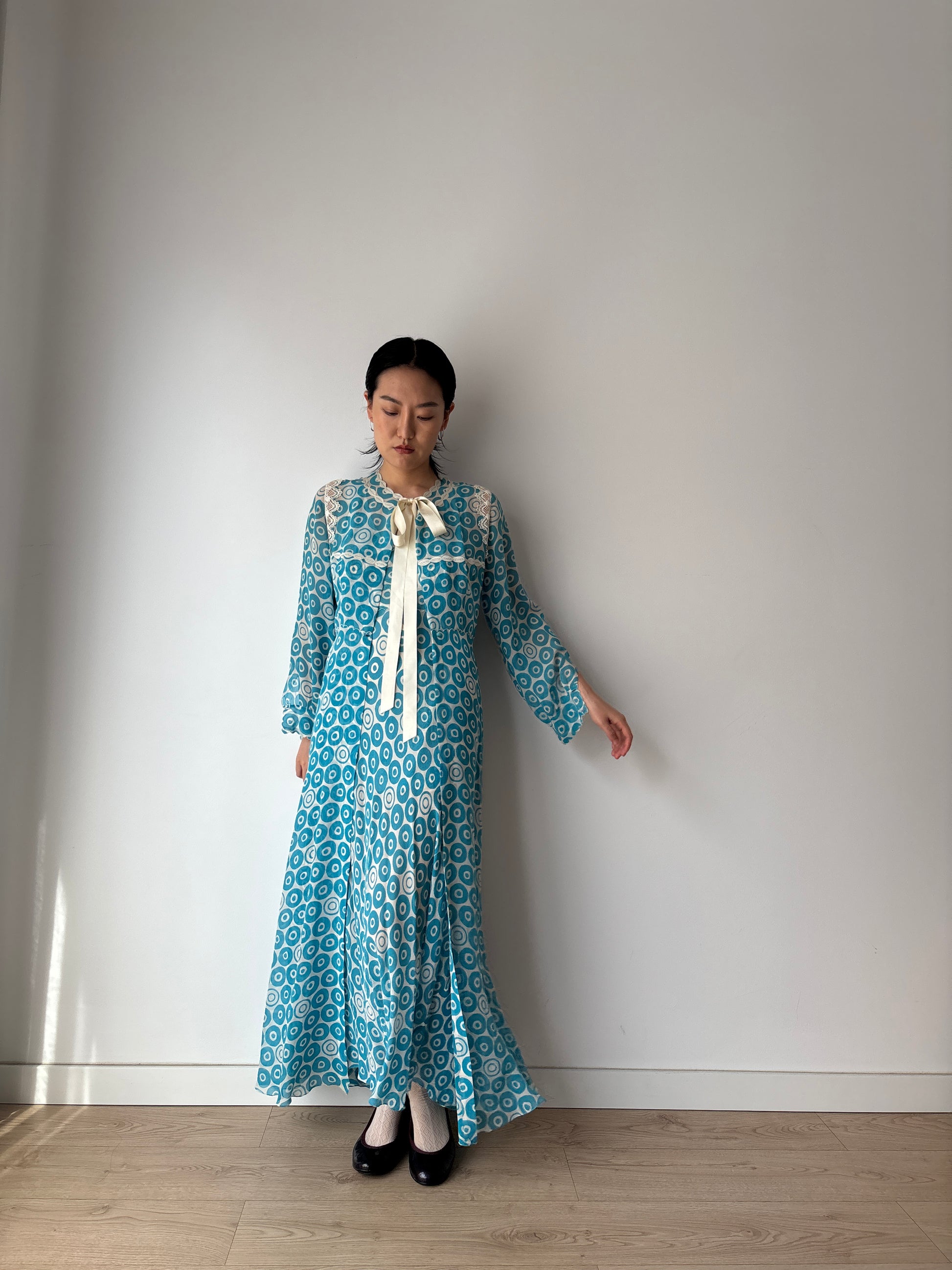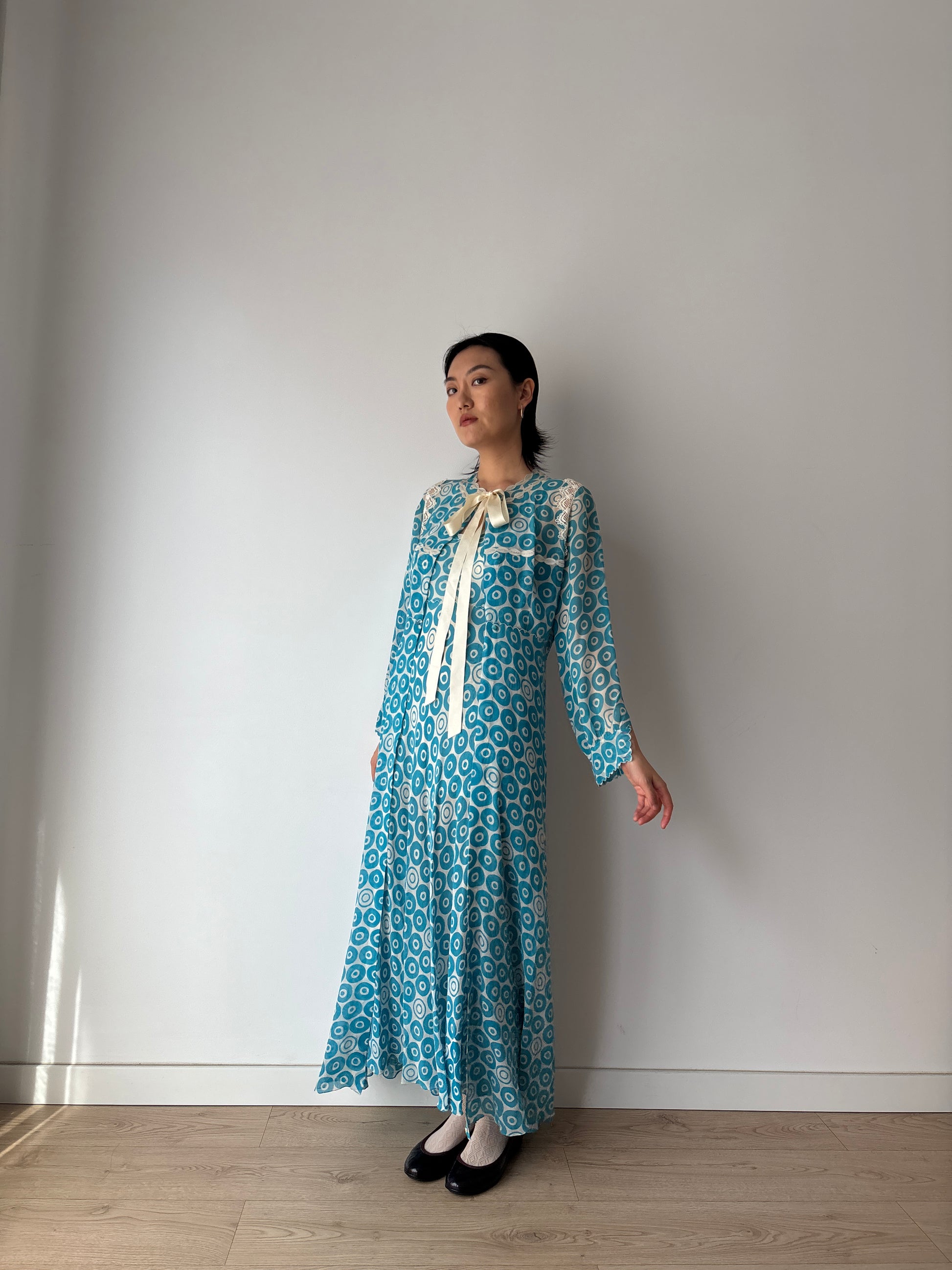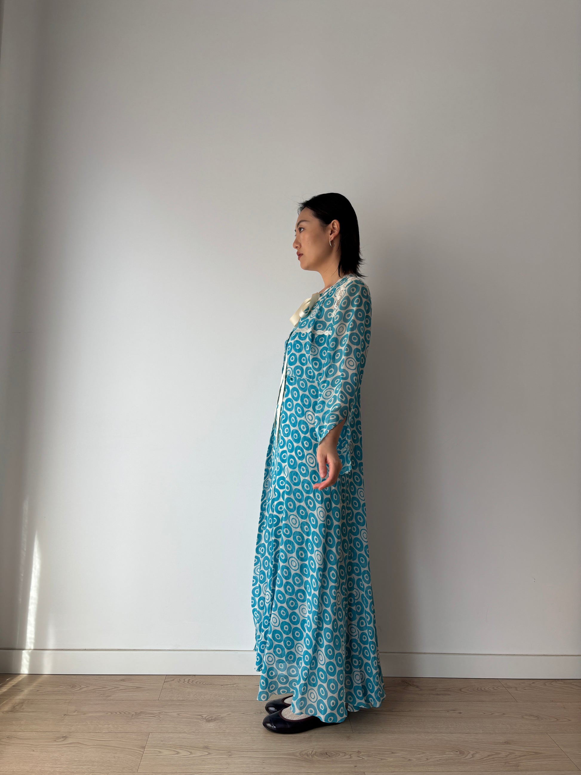 Vintage Blue Print Silk Chiffon Florence Lace Lingerie Set