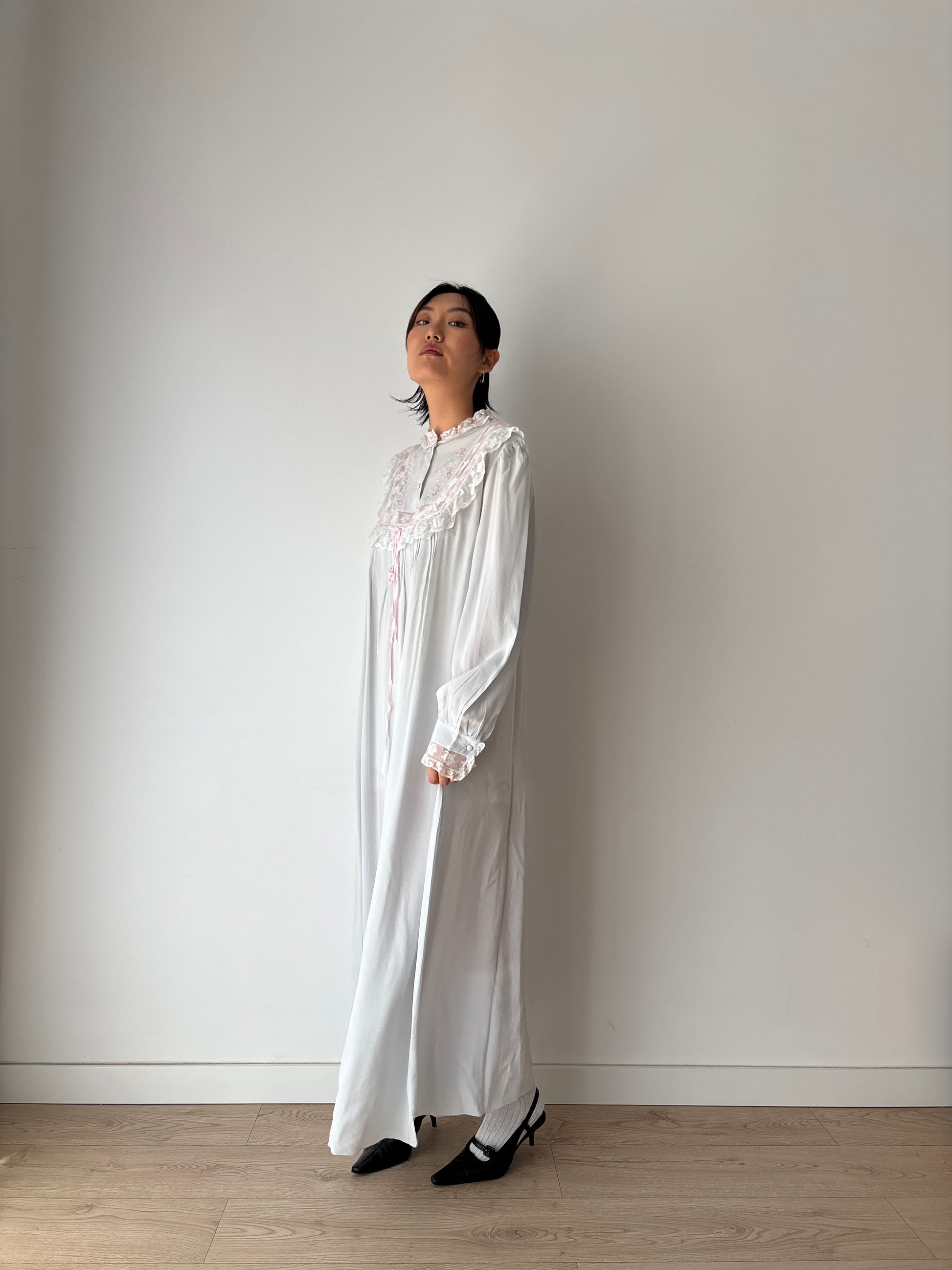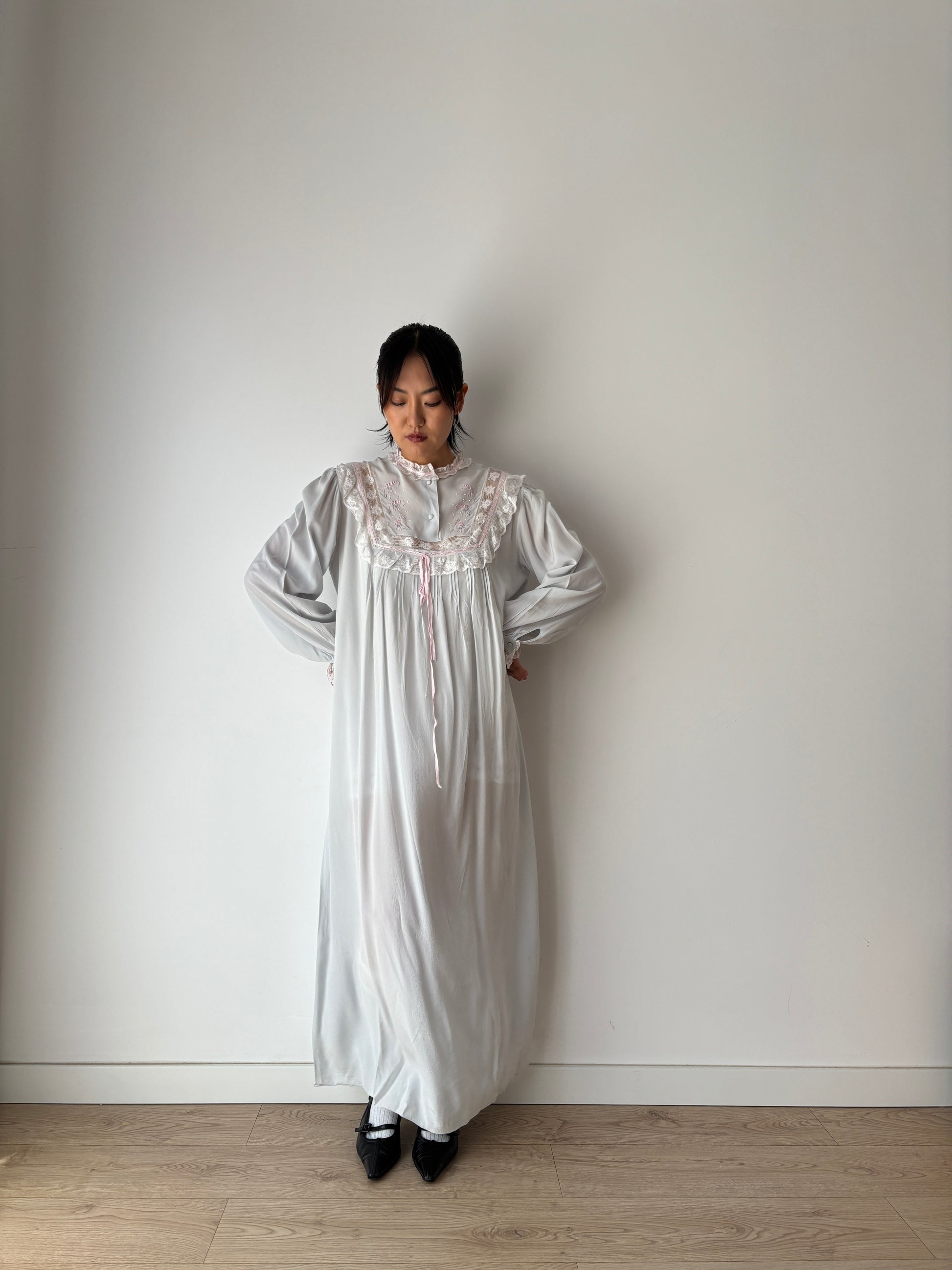 Vintage blue embroidered floral nightgown maxi lingerie silk dress